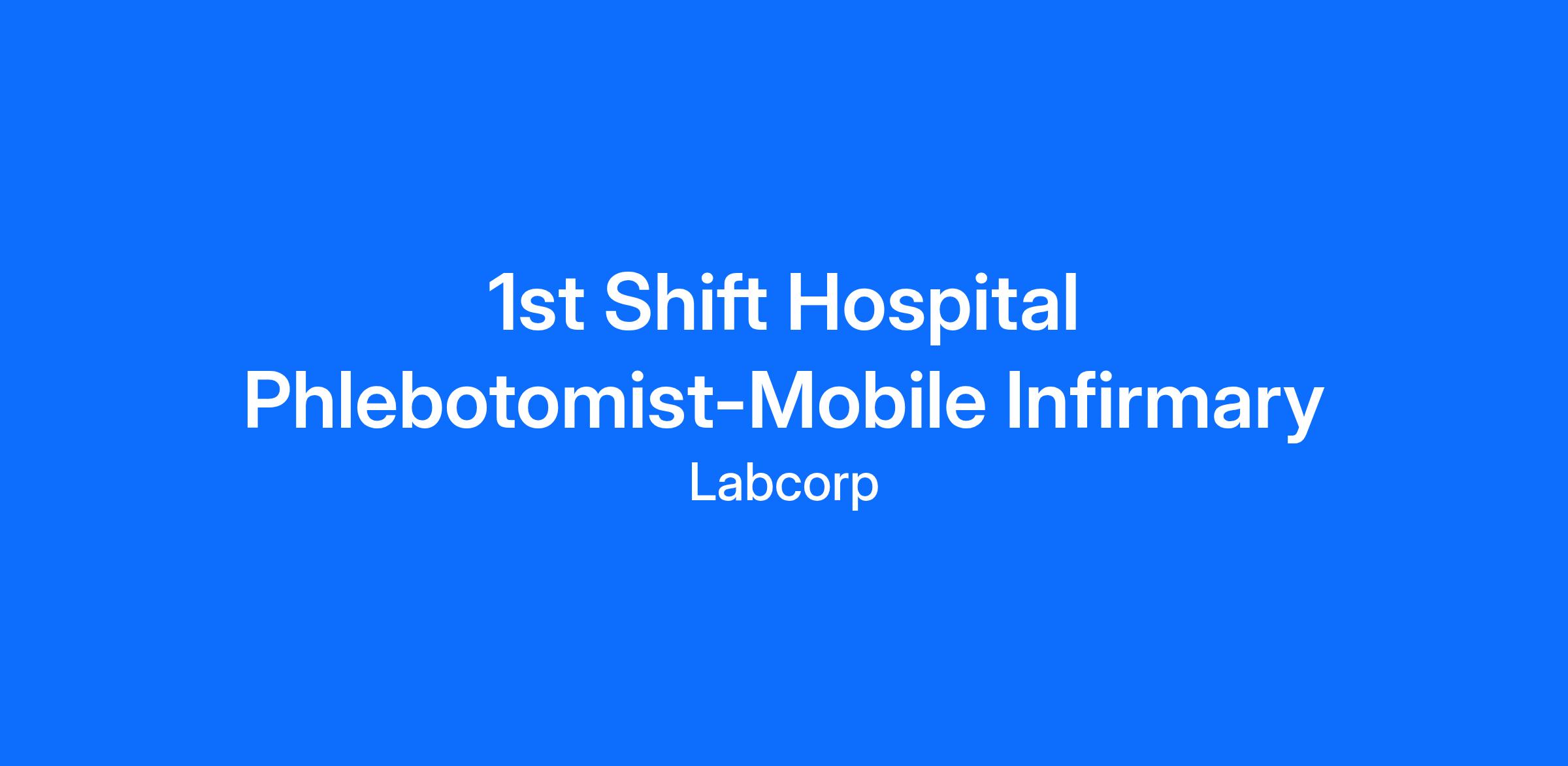 We are currently seeking a Phlebotomist to work at Mobile Infirmary Hospital. In this role you will provide exceptional customer service, perform skilled specimen collections and be the face of the company. In addition, you will be provided opportunities for continuous growth within the organization.