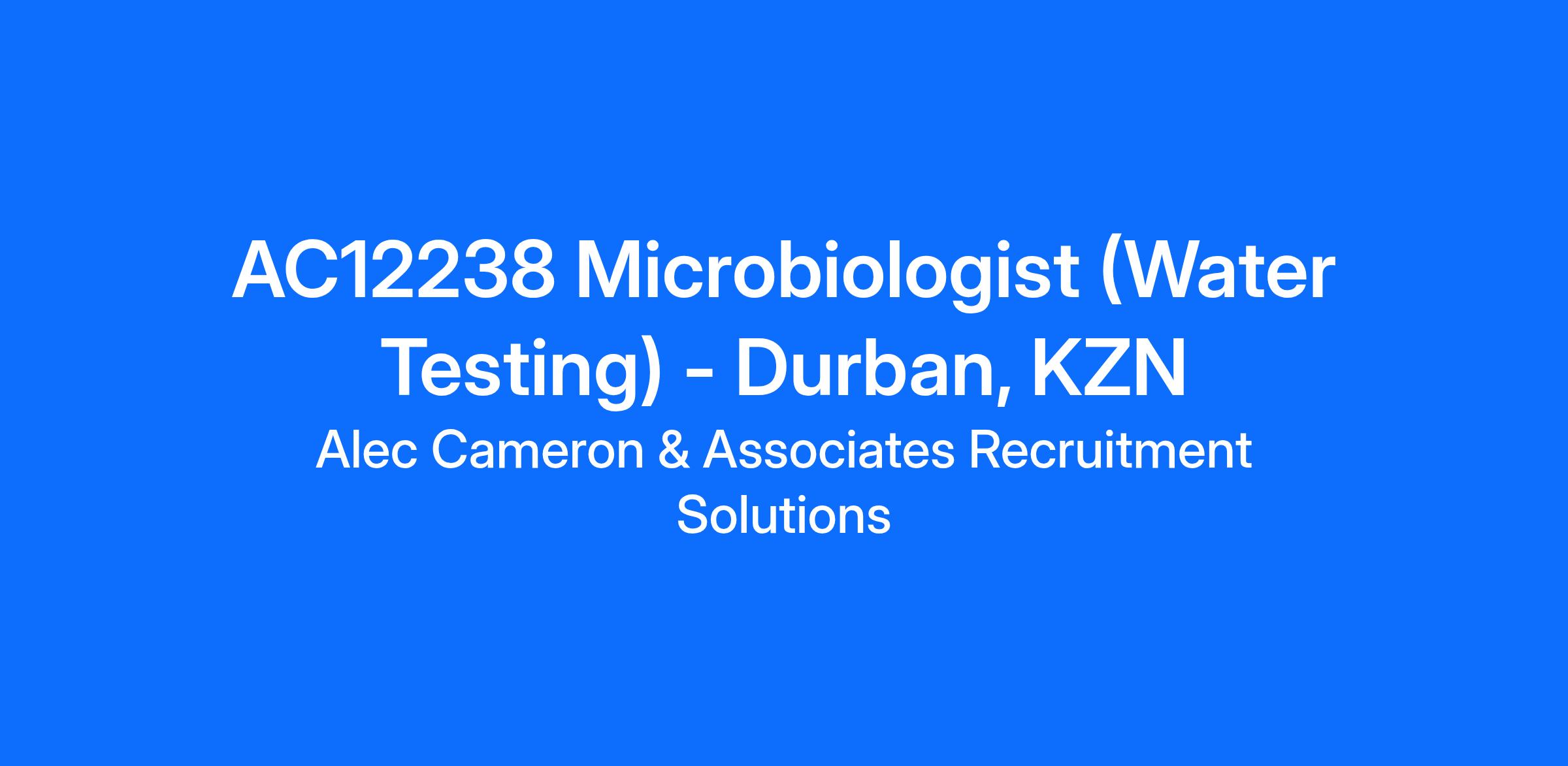 The company is seeking an experienced Microbiologist in their water testing laboratory, to be based in Durban, KZN.