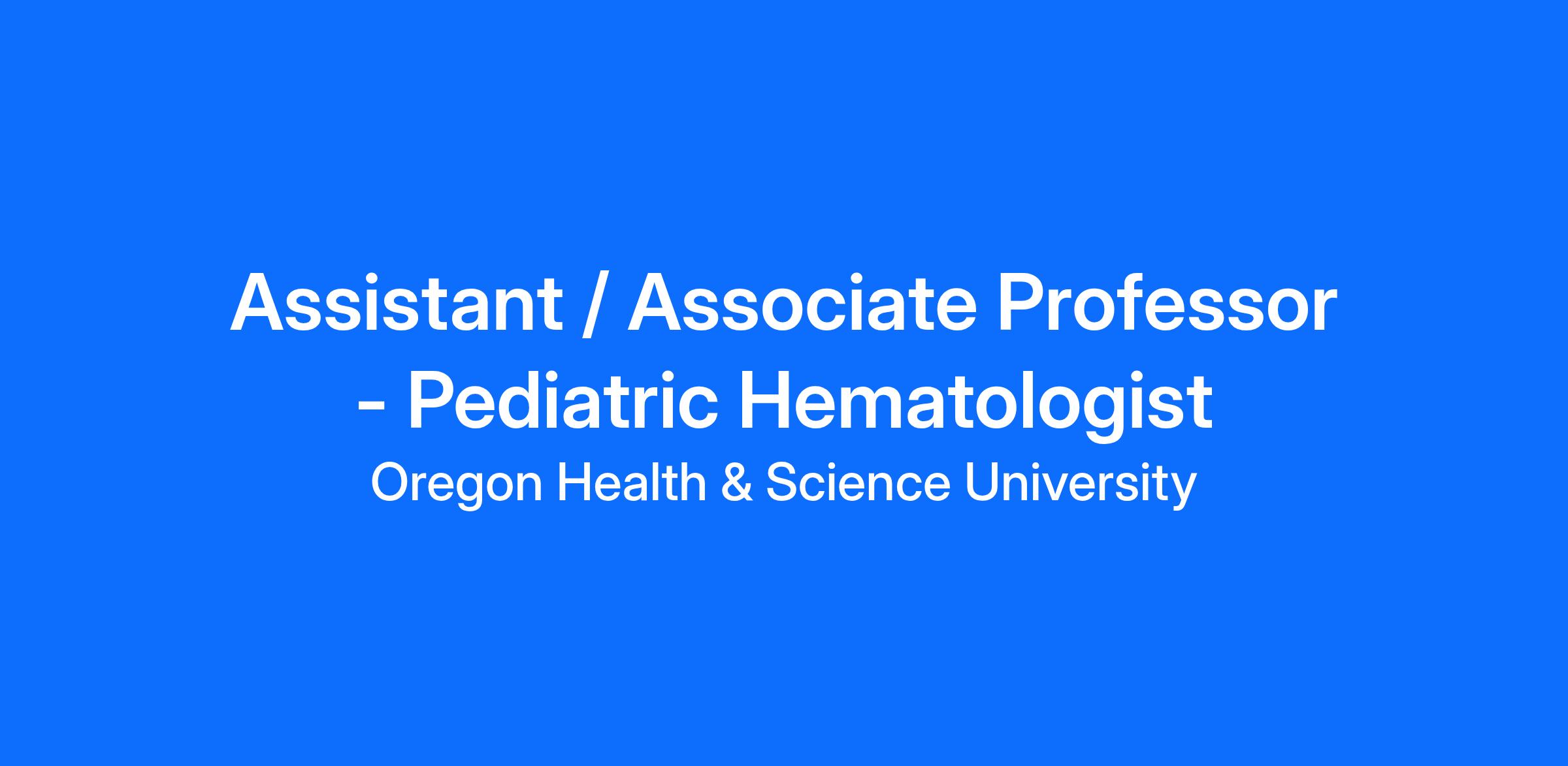 The Hemophilia Center, within the Institute of Development and Disability, in conjunction with the Division of Pediatric Hematology-Oncology (PHO), both within the Department of Pediatrics (DOP) and School of Medicine (SOM) at Oregon Health & Science University (OHSU), are seeking a pediatric hematologist with interest in clinical or educational scholarship at the assistant/associate professor level. Individuals with basic science research interests may also apply. The successful candidate will have clinical, scholarship, teaching, and administrative responsibilities within the Hemophilia Center as well as similar responsibilities within the Division of PHO.