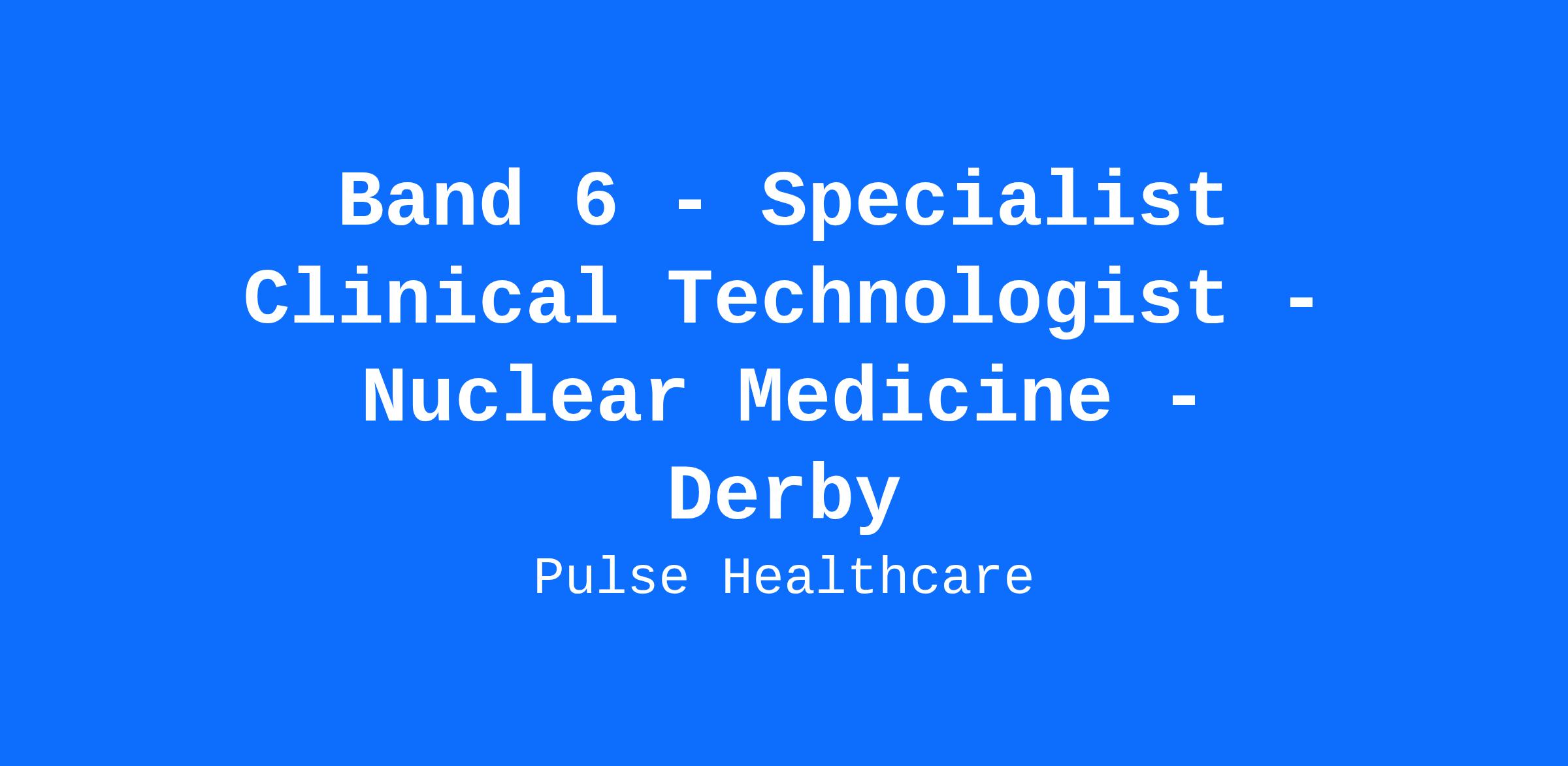 Job Title: Specialist Clinical Technologist - Nuclear Medicine