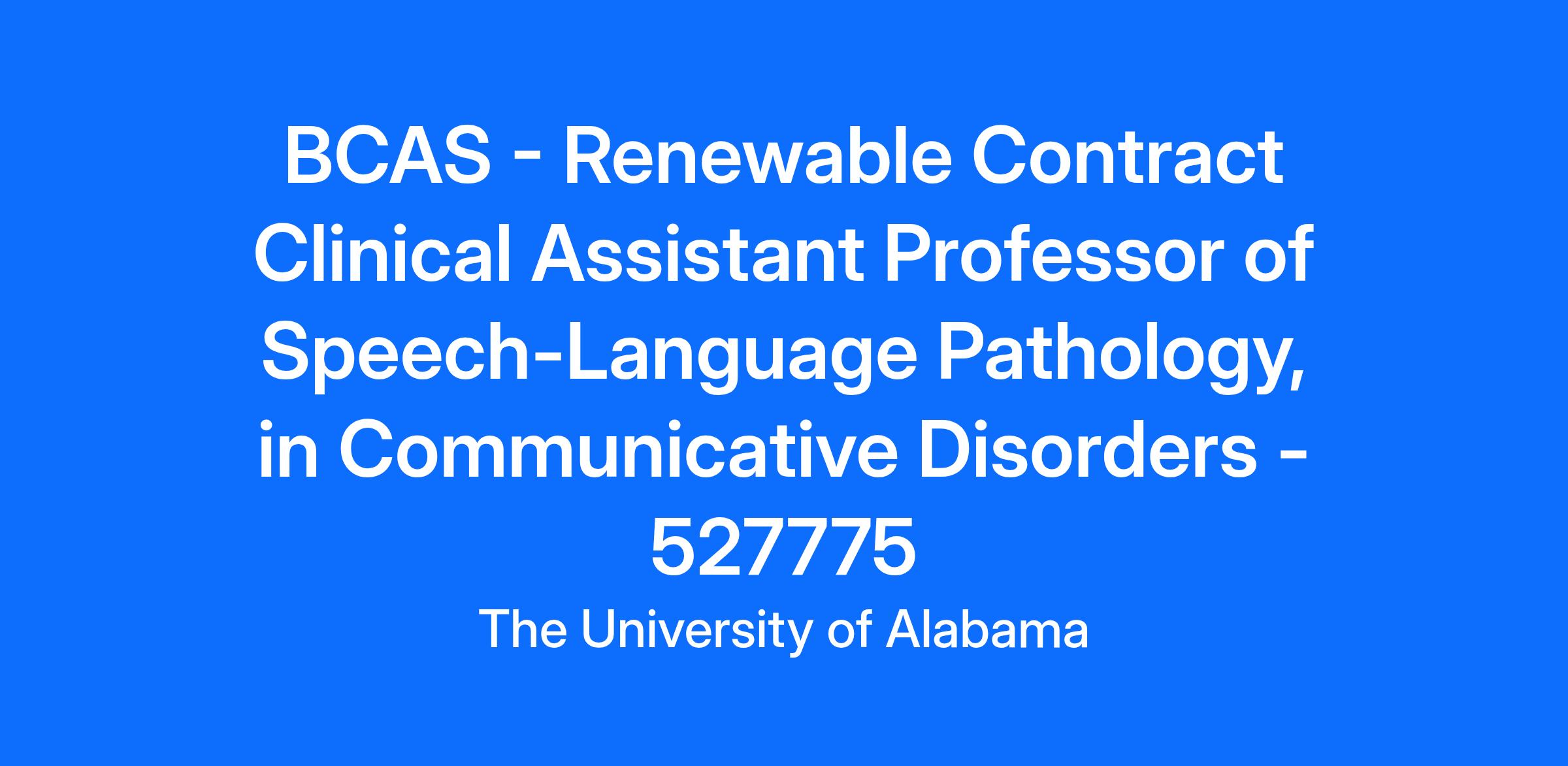 Applications are invited for a full-time, renewable contract Clinical Assistant Professor in the Department of Communicative Disorders at The University of Alabama for the Fall of 2026.