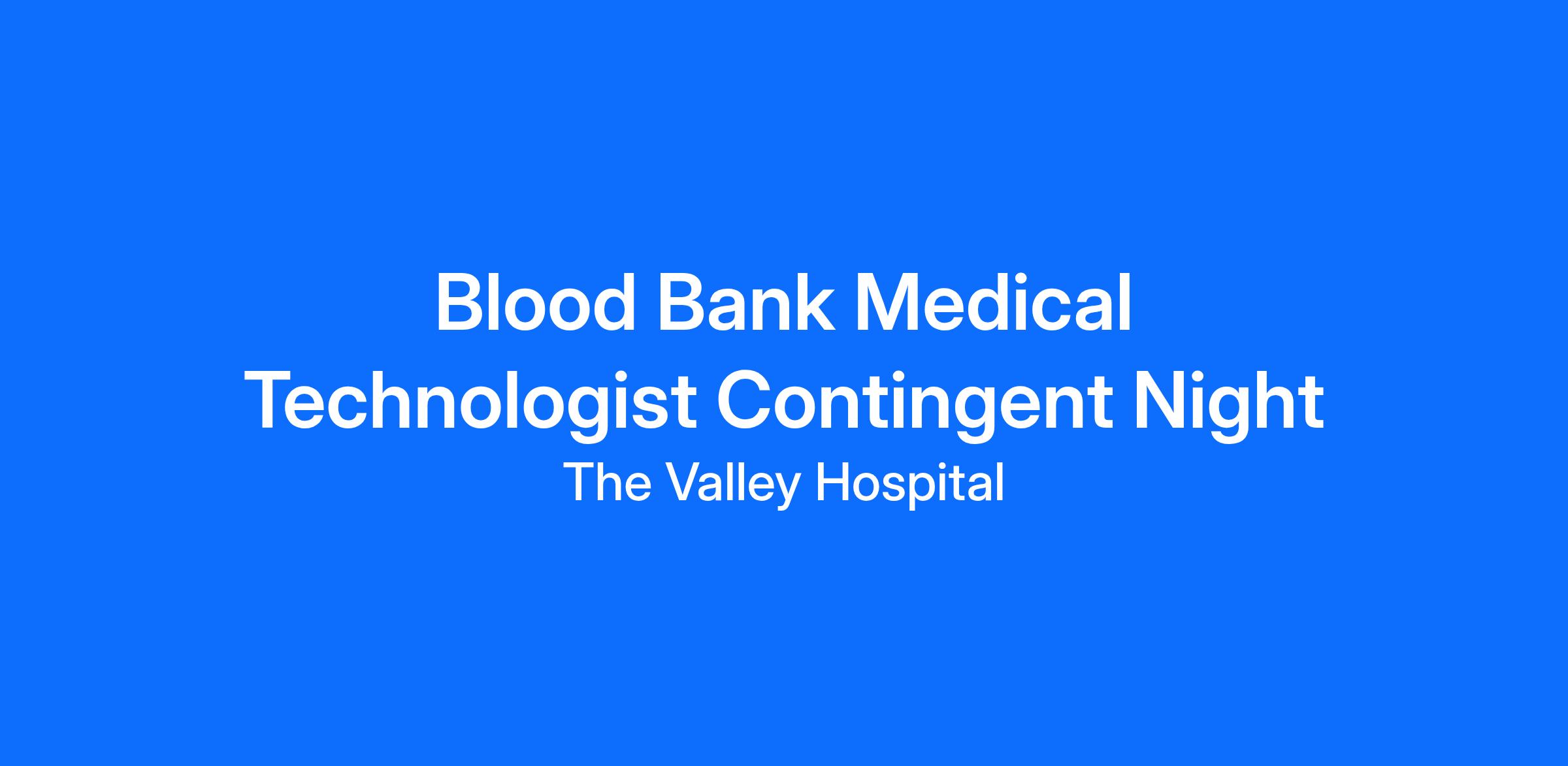 Blood Bank Medical Technologist Contingent Night