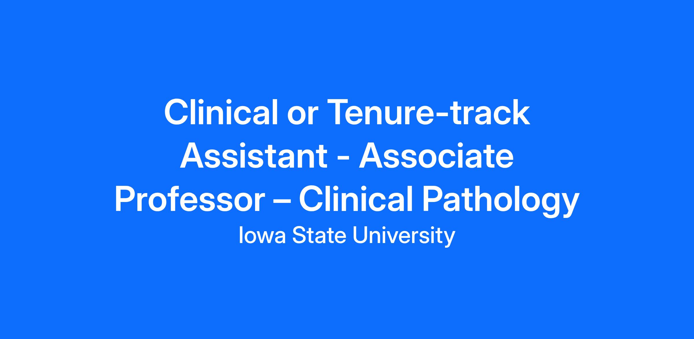 The Department of Veterinary Pathology (VPTH) at Iowa State University (ISU) College of Veterinary Medicine (CVM) in Ames, Iowa, invites applications for a full-time, assistant or associate, clinical- or tenure-track faculty position in Veterinary Clinical Pathology.