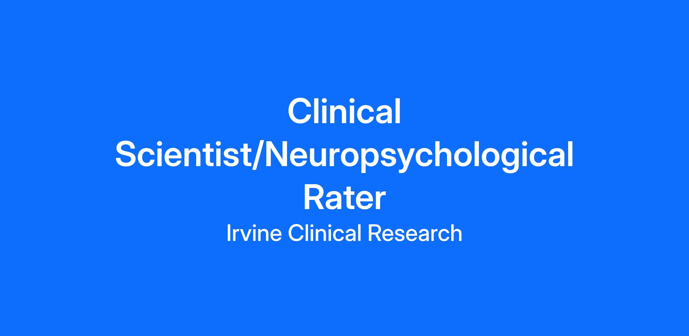 Irvine Clinical Research, a research site specializing in late phase CNS clinical trials, is seeking applicants for a Clinical Scientist in our enrollment core. The clinical scientist will work on prescreening and screening potential candidates for outpatient Phase II/III clinical trials in Neurology and Psychiatry. Study participants are generally adults with concerns about memory (e.g. MCI and Early-Mild AD), although our site also conducts research on drugs to treat depression and other illnesses.