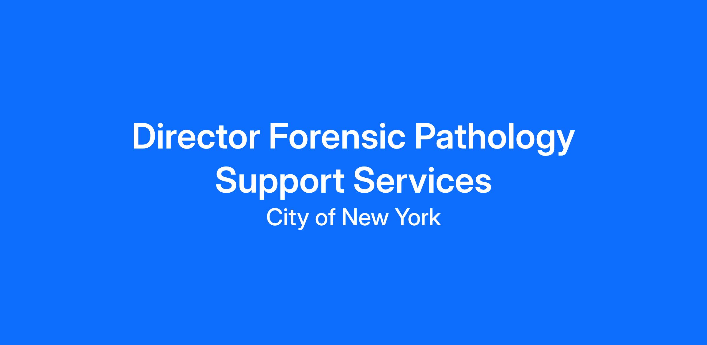 The New York City Office of Chief Medical Examiner (OCME) seeks an experienced, highly organized, and strategically minded Director of Forensic Pathology Support Services to oversee the operational units that directly support the City’s forensic pathology mission. The Director will manage the Forensic Autopsy Services Unit (FASU), Forensic Radiography Unit, Forensic Photography Unit, Forensic Pathology Coordinators, and the Medical Examiner Support Unit (MESU). The Director is responsible for ensuring that all technical, operational, and administrative services supporting forensic pathology are delivered safely, efficiently, and in accordance with professional, legal, and accreditation standards.