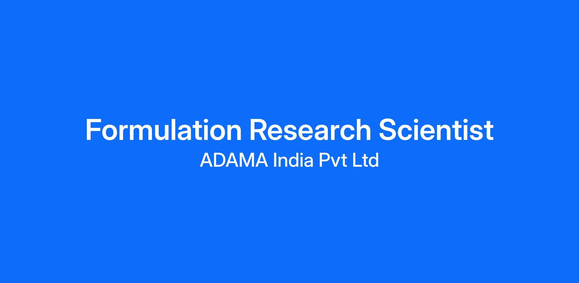 We are inviting applications for the position of Formulation Research Scientist for our team.
