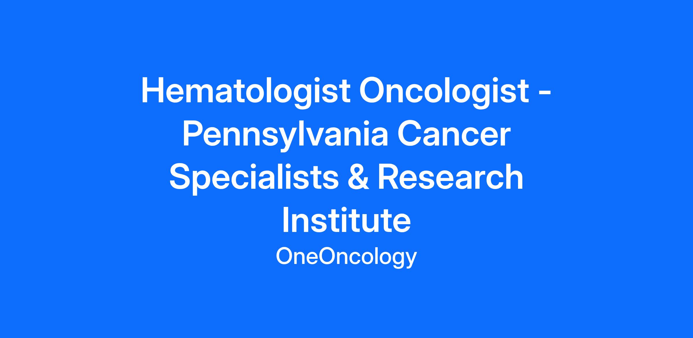 Due to a pending retirement and provider vacations Pennsylvania Cancer Specialists and Research Institute is seeking a passionate Hematologist Oncologist to assist our dedicated team PRN/Part-Time, 2-3 days a week in Gettysburg, Pennsylvania. In this role, you will provide comprehensive cancer care, including evaluations, treatment planning, and ongoing patient management, in close collaboration with experienced colleagues. You will practice in a supportive, resource-rich environment that combines advanced technology with a strong commitment to personalized care. As part of a private practice with over 30 years of service, you will play a vital role in delivering coordinated, value-based care that addresses the physical, emotional, and spiritual needs of patients throughout their treatment journey.