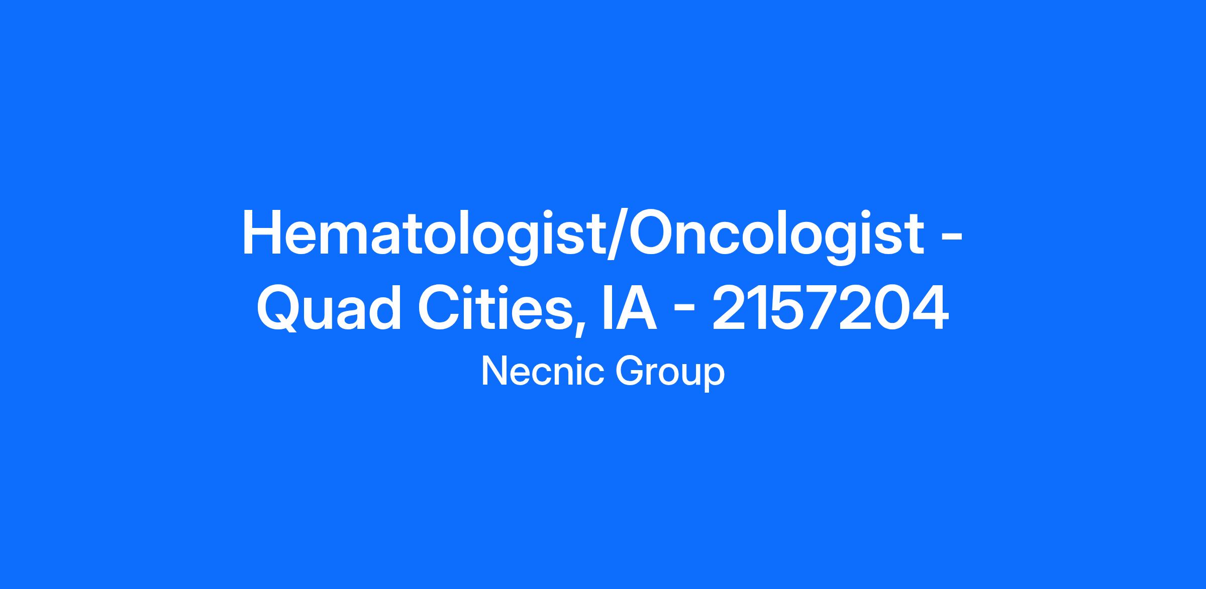 Hematologist/Oncologist - Quad Cities, IA