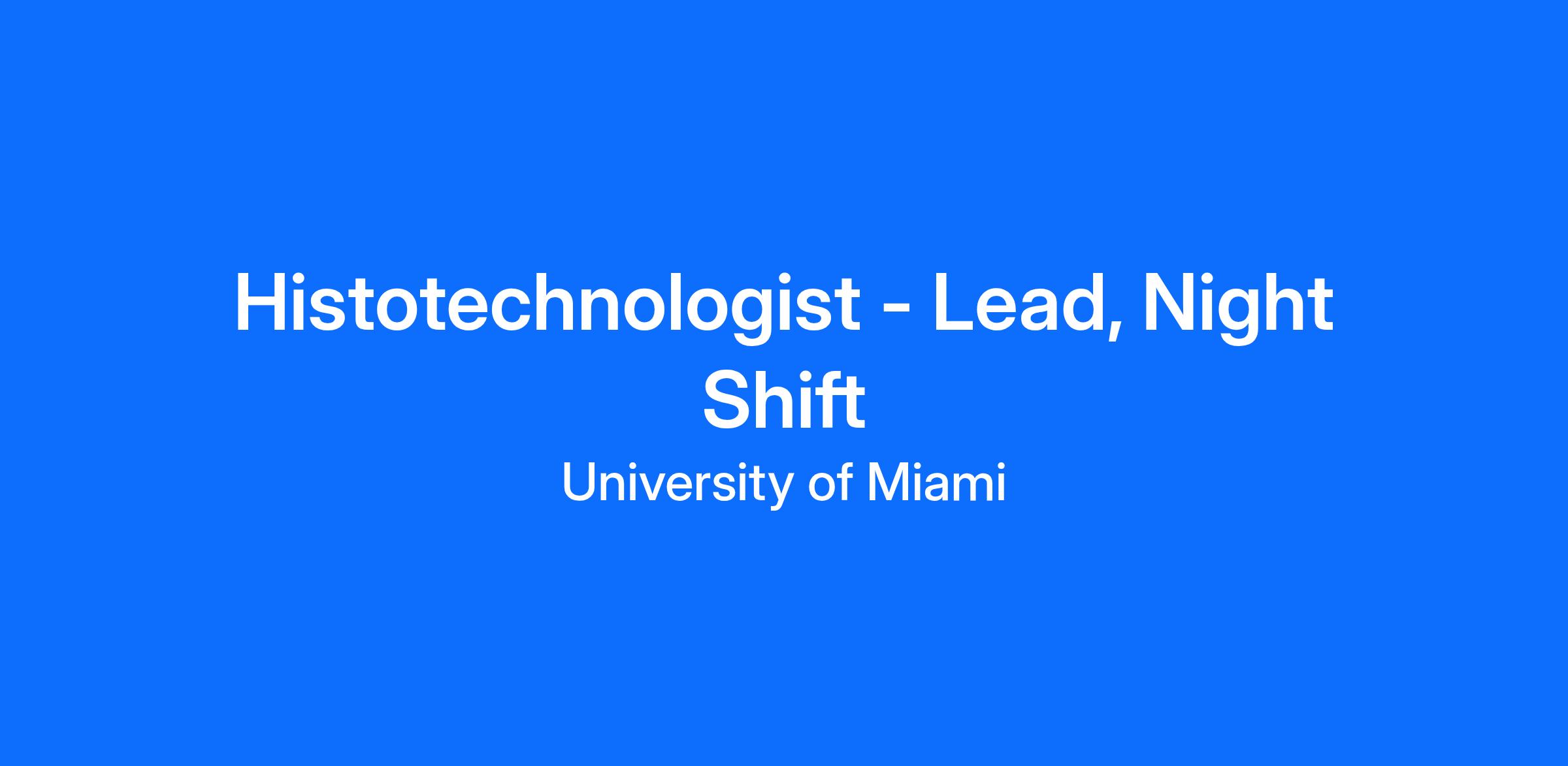 The Pathology Department at UHealth/University of Miami has an exciting opportunity for a full-time Lead Histotechnologist to work the third shift (10pm - 6:30am) at the UTower Hospital.