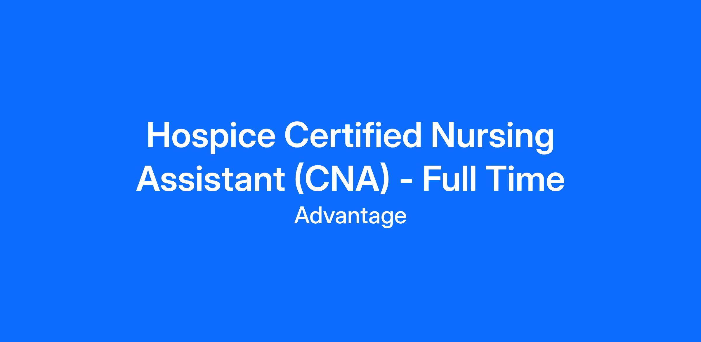 Hospice Certified Nursing Assistant - Full Time