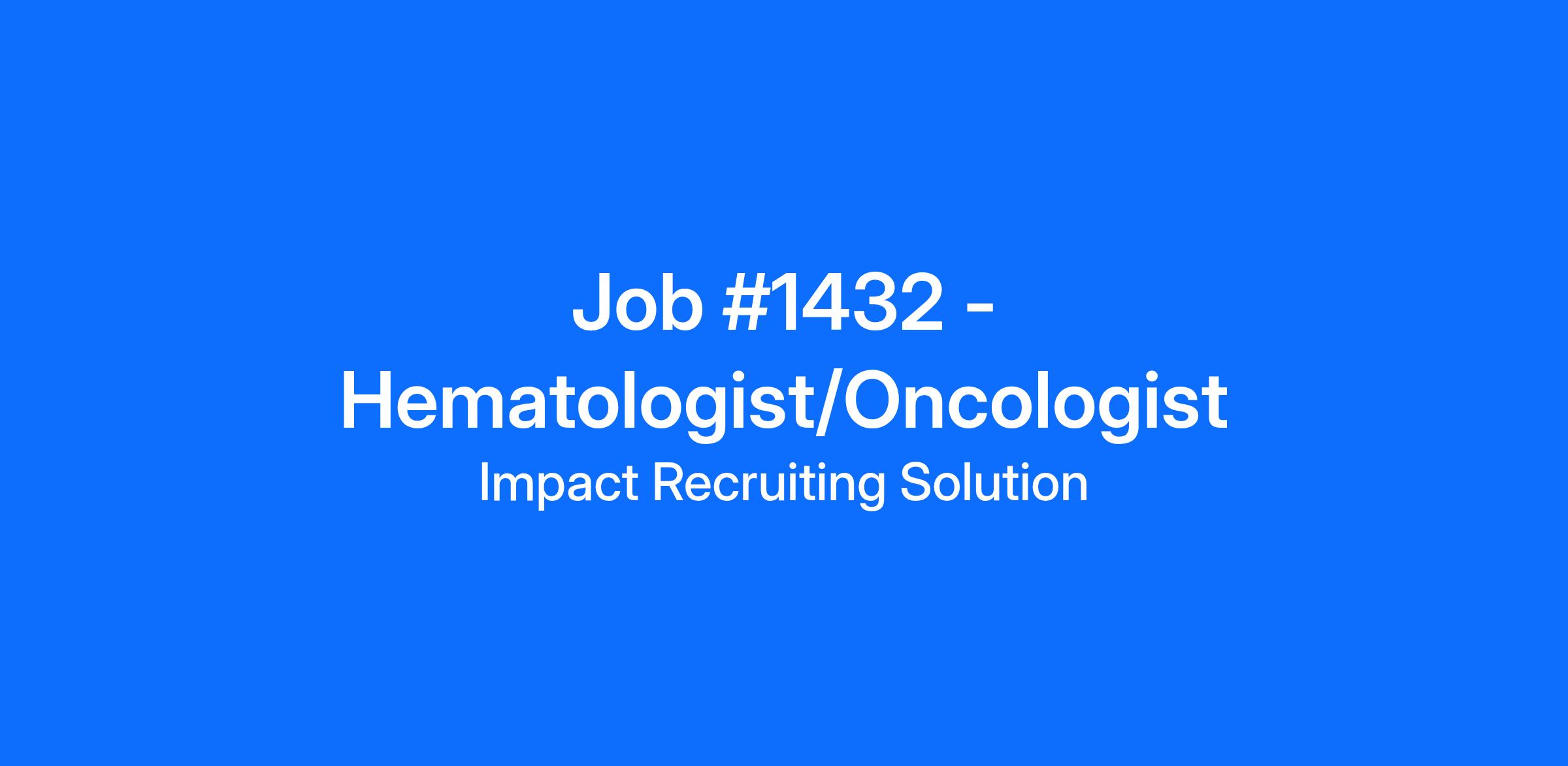 JOB TITLE (#1432): Hematologist/Oncologist - Bronx, NY
