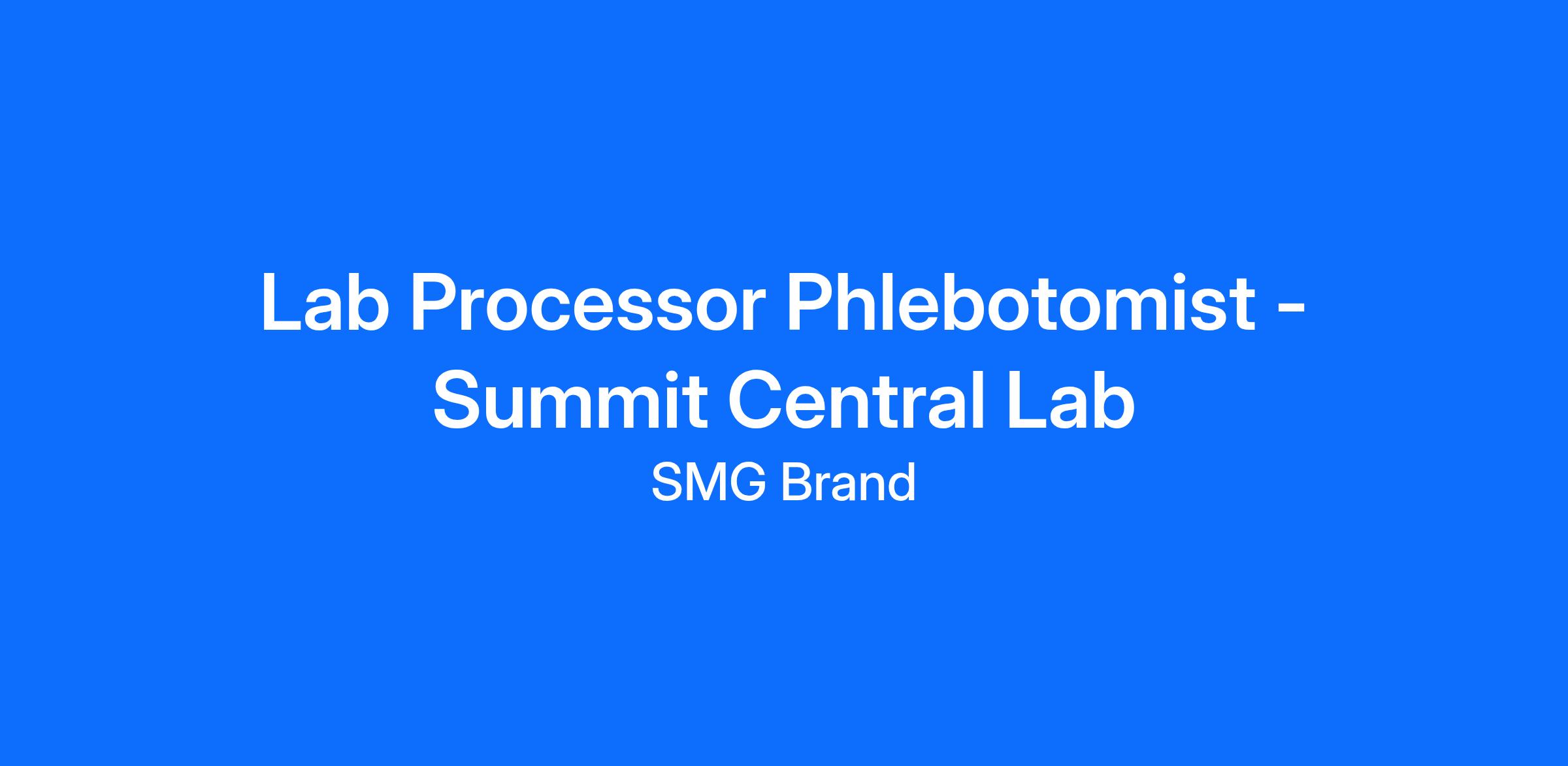 Summit Central Lab is seeking a Lab Processor / Phlebotomist to join their team. This is a full time opportunity, working 1:00pm-11:30pm Monday - Friday with rotating weekday off.