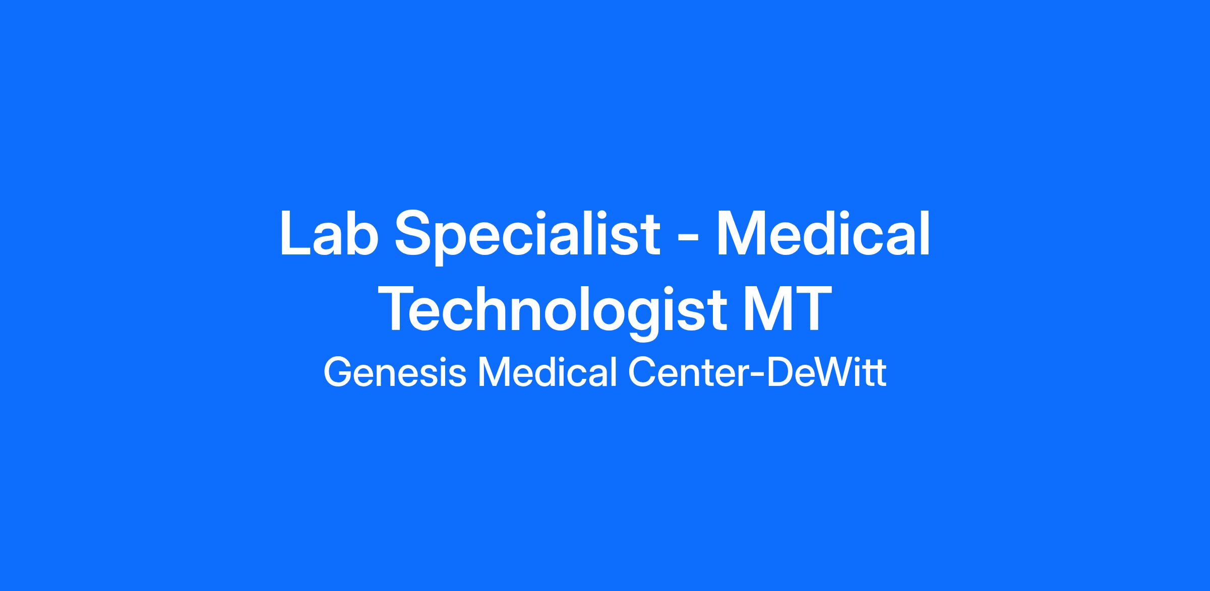 Cure Healthcare is seeking a Lab Specialist - Medical Technologist MT for positions in DeWitt, Iowa. Current Iowa license and AHA BLS and ACLS required and additional certifications related to this specialty. To qualify for this travel assignment, the candidate's primary residence must be located at least 50 miles from the facility address. This shift is 5x8 Nights. Required: 2 years of recent experience in Medical Technologist MT. Please inquire for specific job details and confirm shift required by facility.