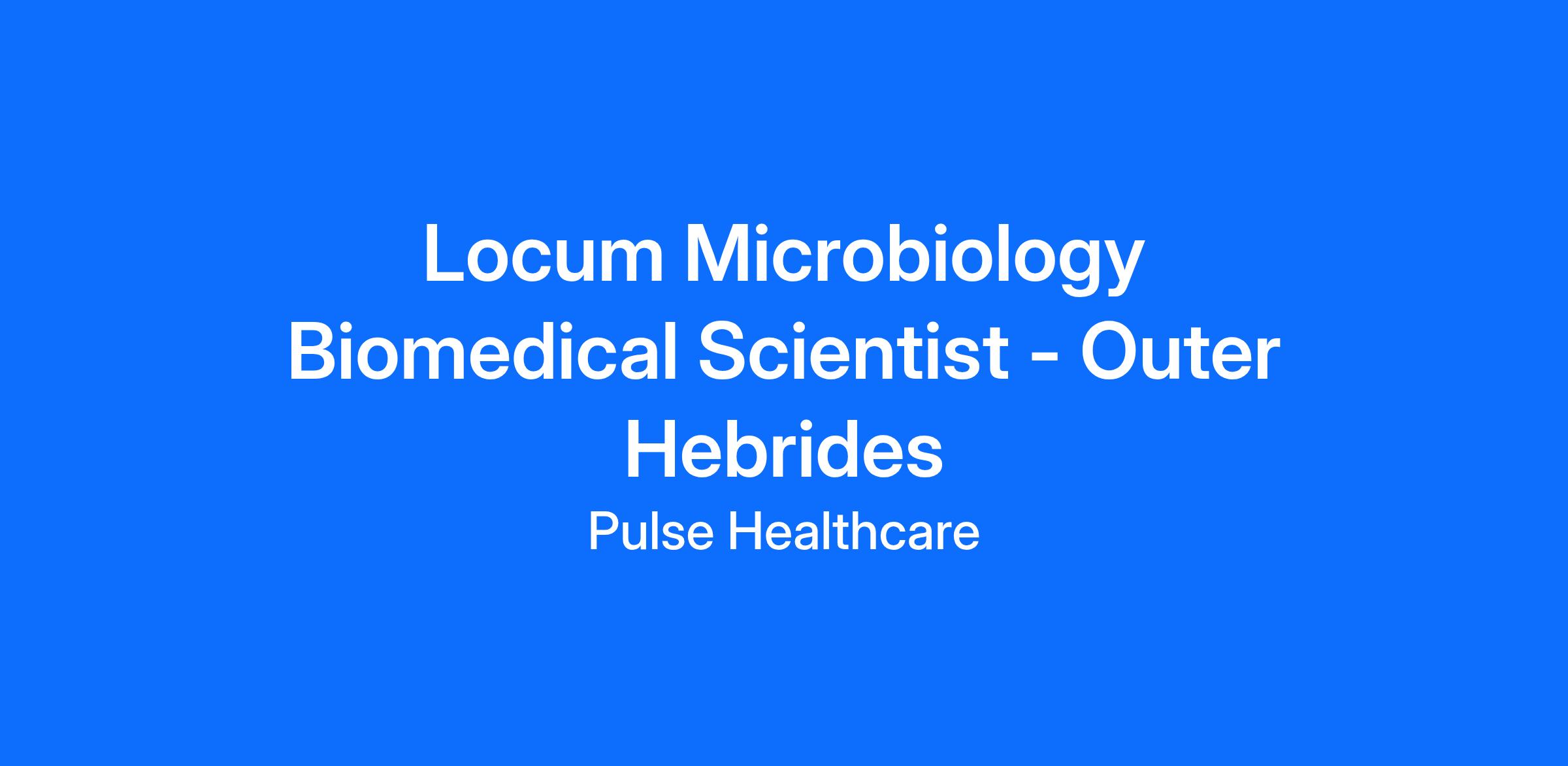 We are currently seeking a Band 6 Biomedical Scientist specialising in Microbiology to join our client’s team in the Outer Hebrides. This is a full-time, ongoing position working core hours only, offering a competitive hourly rate and the opportunity to contribute to a busy and well-established laboratory service.