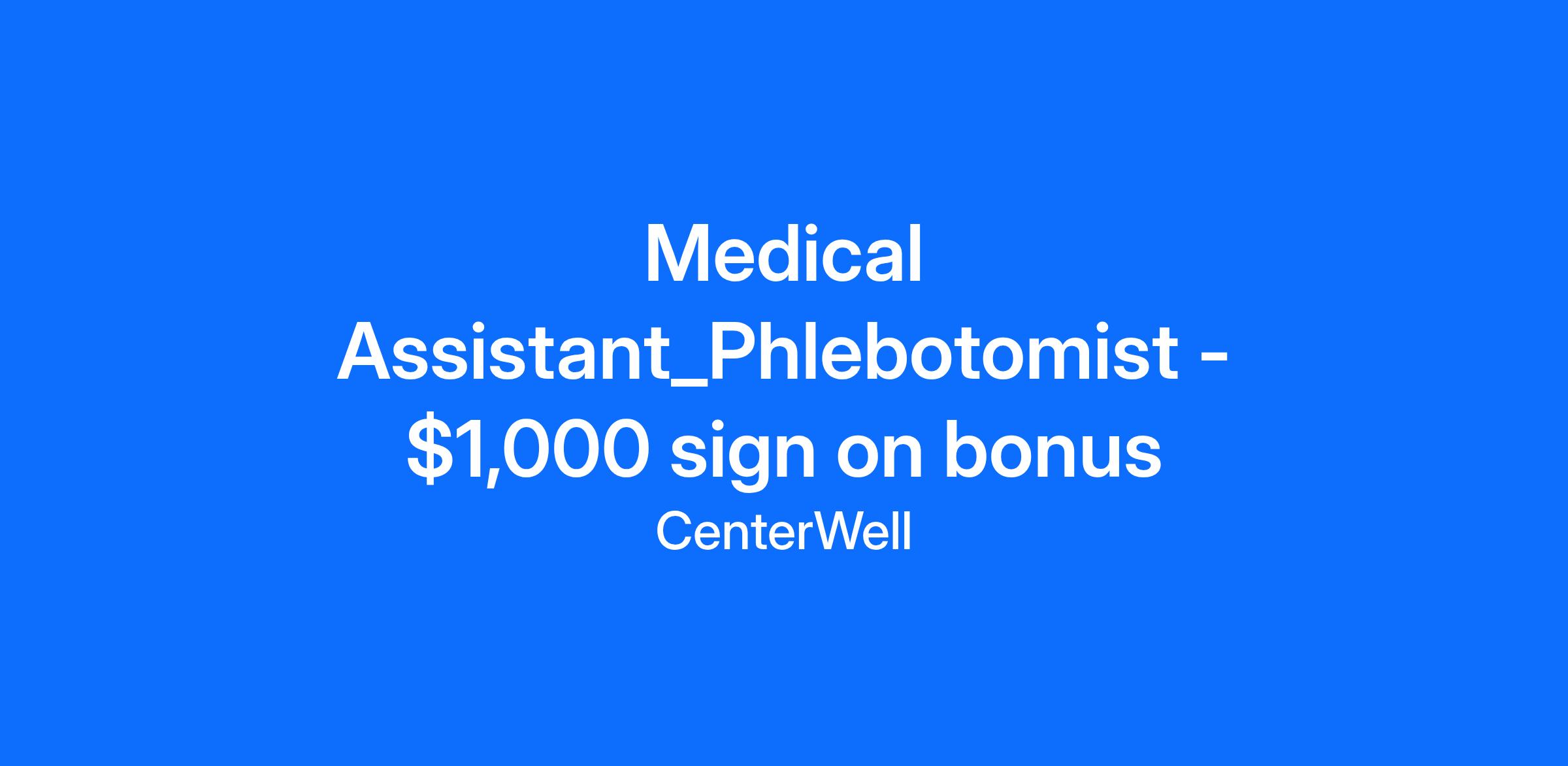 The Medical Assistant / Phlebotomist performs clinical duties such as discussing symptoms, obtaining vital signs, medication/vaccine administration, phlebotomy, collecting specimens, performing diagnostic screening tests, sterilizing/cleaning equipment, maintaining examination rooms, and documenting information into the electronic medical records system. Collaborates closely with Physicians and Advanced Practice Providers. Delivers direct patient care dependent on what active certification allows. Decisions typically focus on interpretation of area/department policy and methods for completing assignments. Works within defined parameters to identify work expectations and quality standards, but has latitude over prioritization/timing, and works under minimal direction. Follows standard policies and procedures that allow opportunity for interpretation/deviation and/or independent discretion.