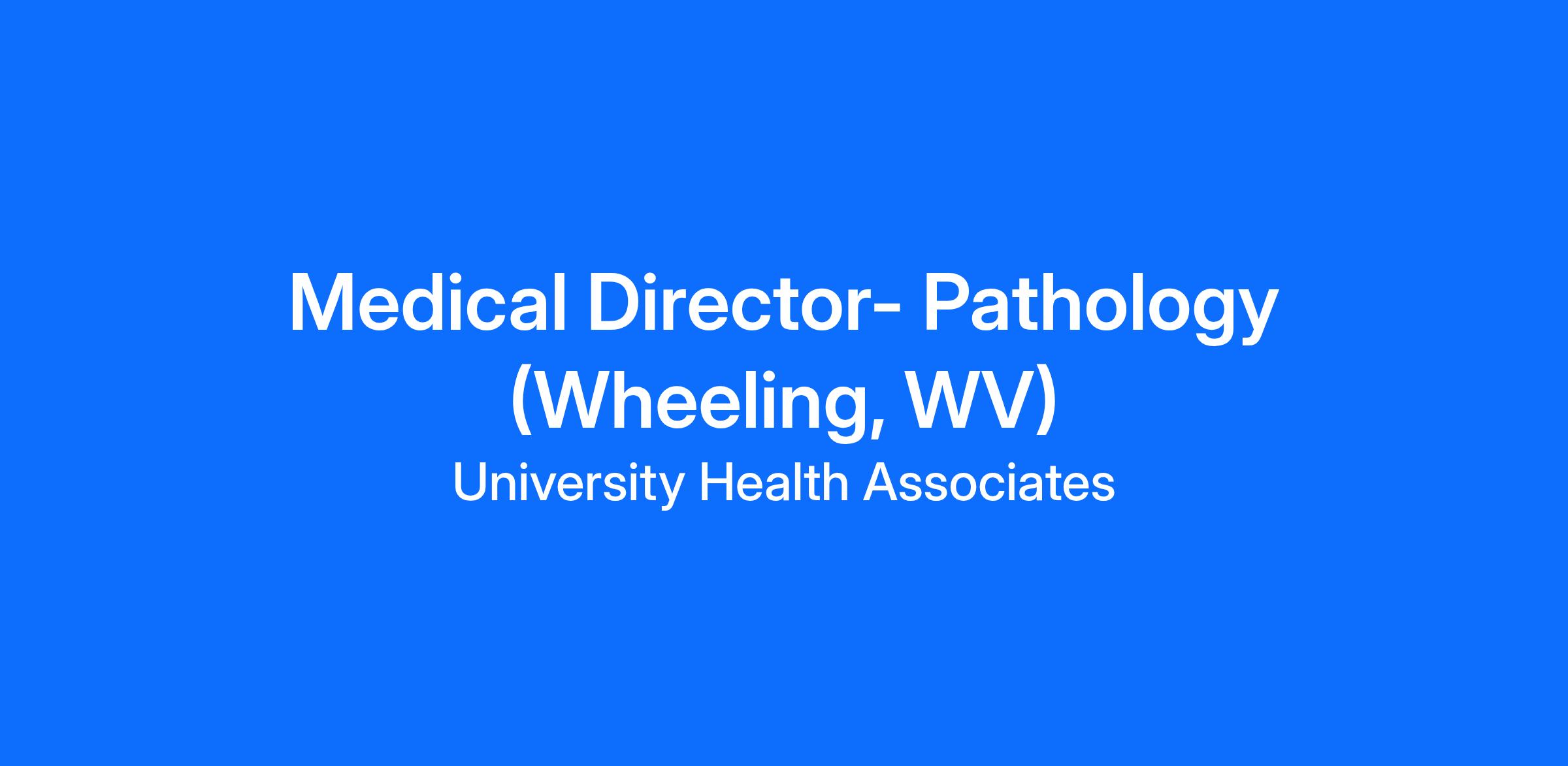 WVUHS Medical Group seeks a Medical Director of Pathology. The successful candidate will practice in Wheeling, WV.