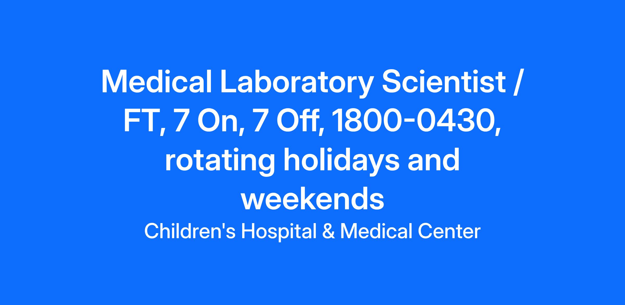 - Current and valid Medical Laboratory Scientist (MLS) or equivalent certification with the American Society of Clinical Pathology or other equivalent certifying agency required, within 6 months of hire. within 180 Days Required