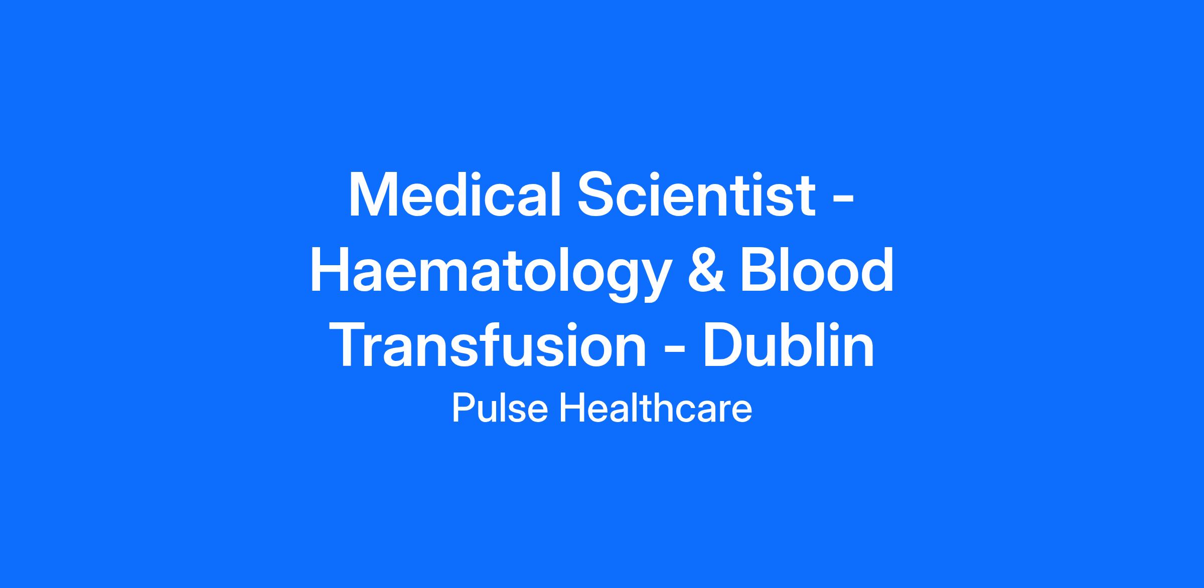 Job Title: Medical Scientist – Haematology & Blood Transfusion