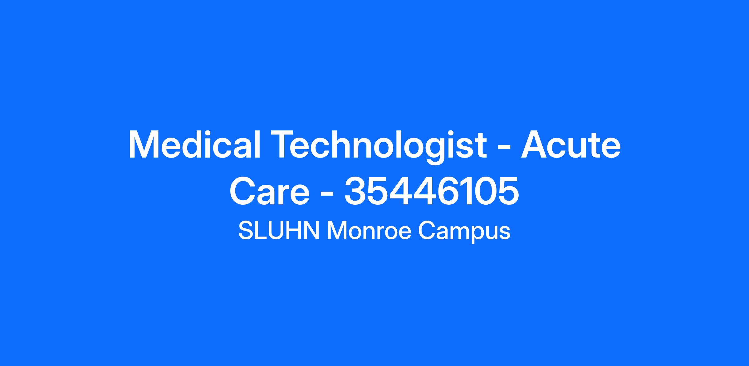 Medical Technologist - Acute Care - 35446105