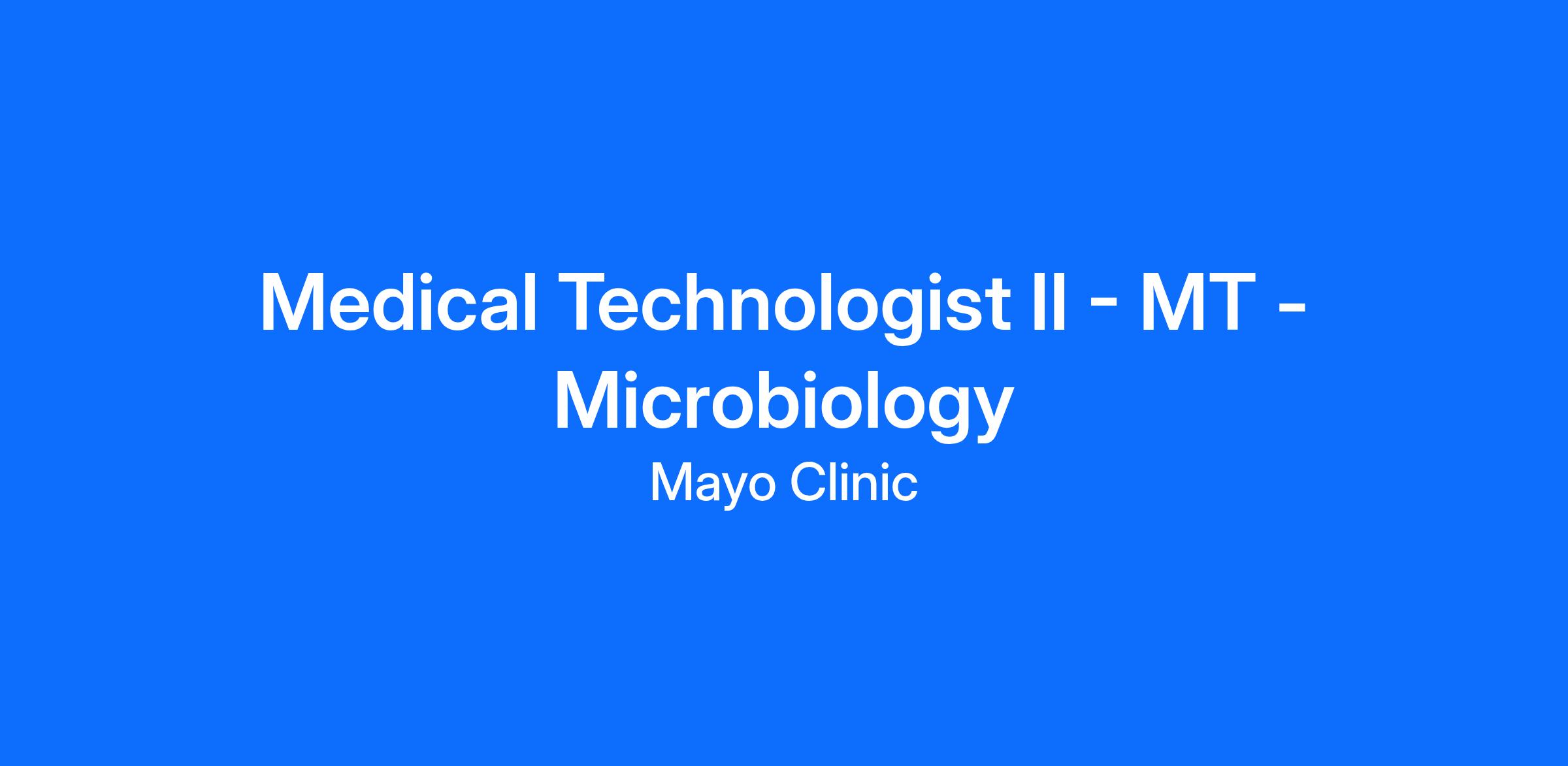 Baccalaureate Degree in Medical Technology, Medical/Clinical Laboratory Science, or health related field. Completion of a clinical laboratory training program is required. Applicants with a Baccalaureate Degree in Biology or Chemistry with completion of a clinical laboratory training program or clinical laboratory experience will be considered in the appropriate field of study (i.e. Microbiology). Must have successfully completed an accredited Medical Laboratory Technologist/Technician program.