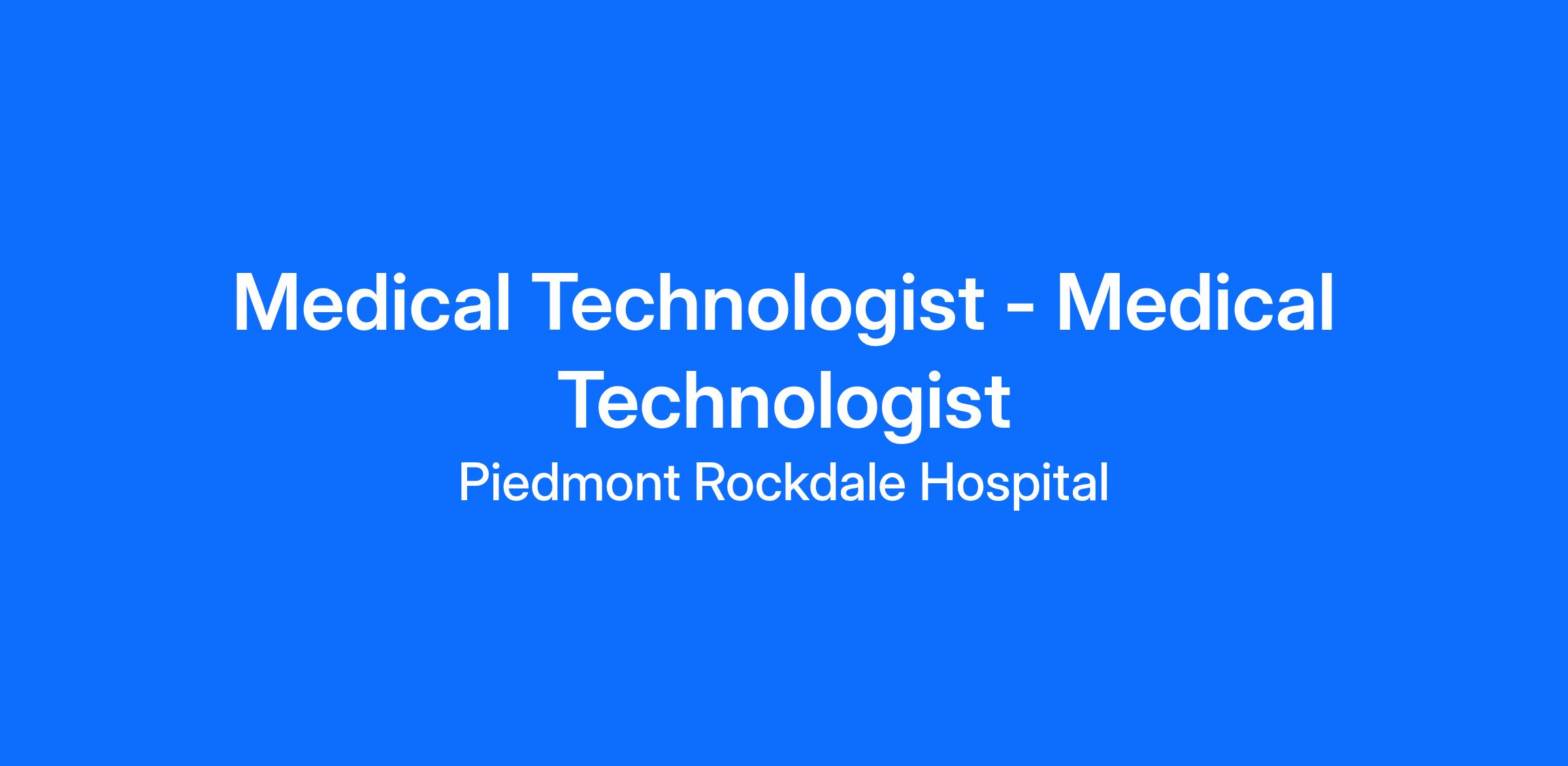 Job Title: Medical Technologist: Medical Technologist