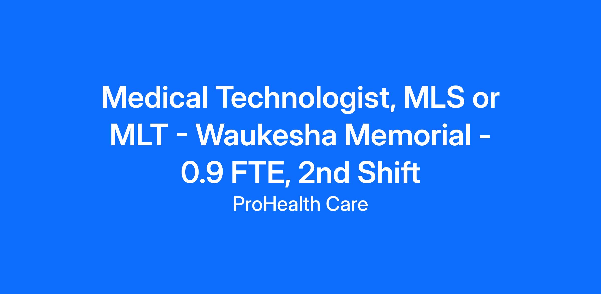 Medical Technologist, MLS or MLT - Waukesha Memorial - 0.9 FTE, 2nd Shift