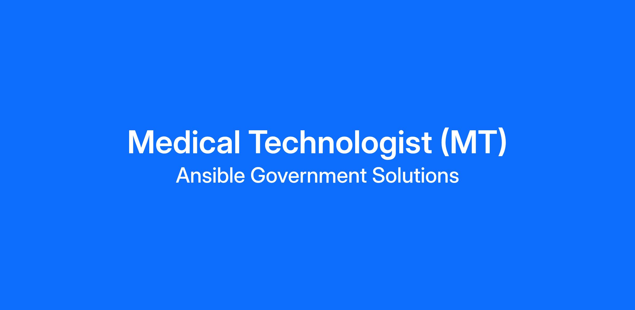 Ansible Government Solutions, LLC (Ansible) is currently recruiting Medical Technologists to support the VA Medical Center located at 11301 Wilshire Blvd, Los Angeles, CA 90073. Services will be delivered to both the Anatomic Pathology and Clinical Pathology divisions of the facility. Exceptional compensation packages with full benefits are available.