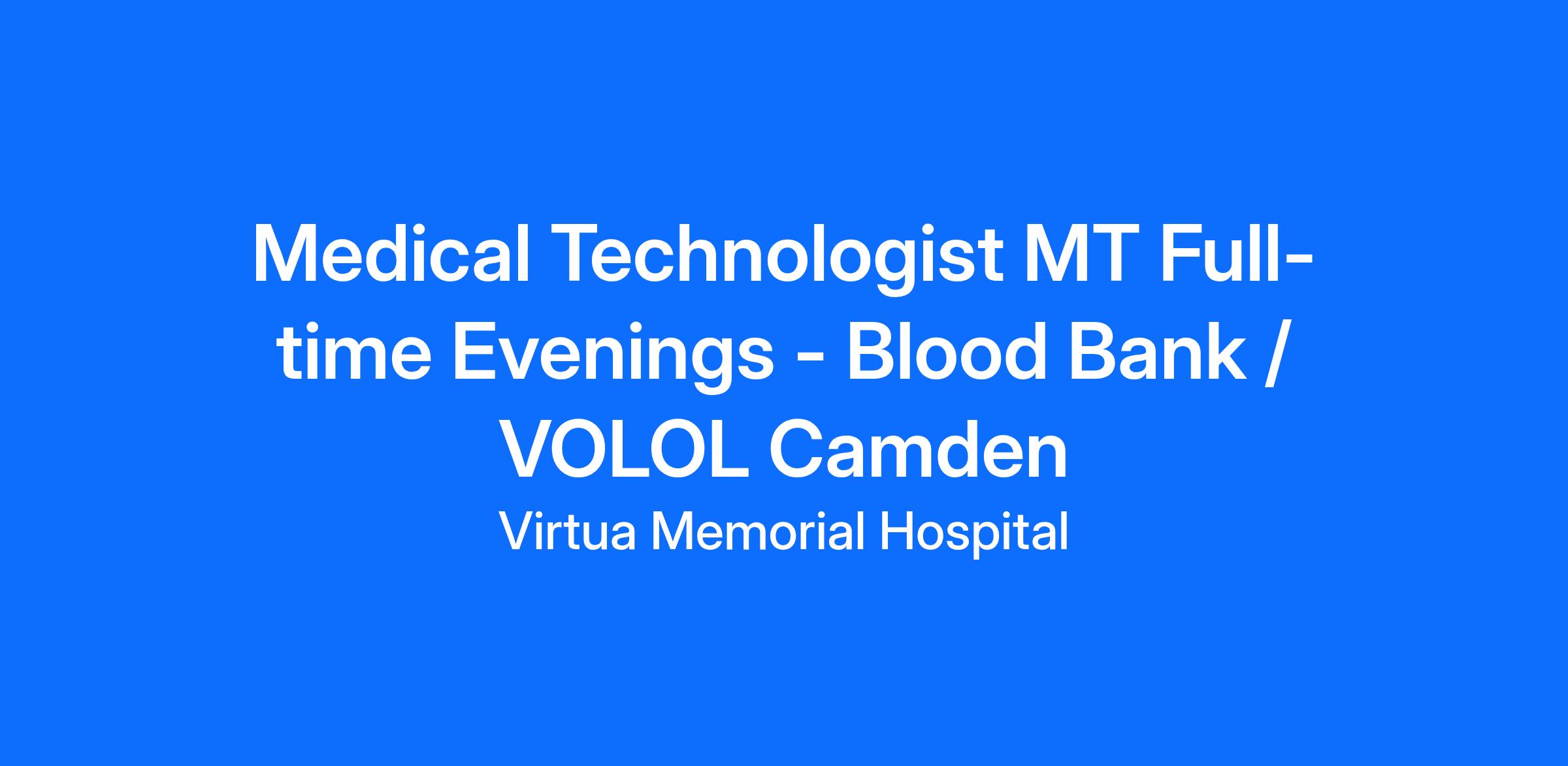 Full-time MT or MLT - Blood Bank experience required!
