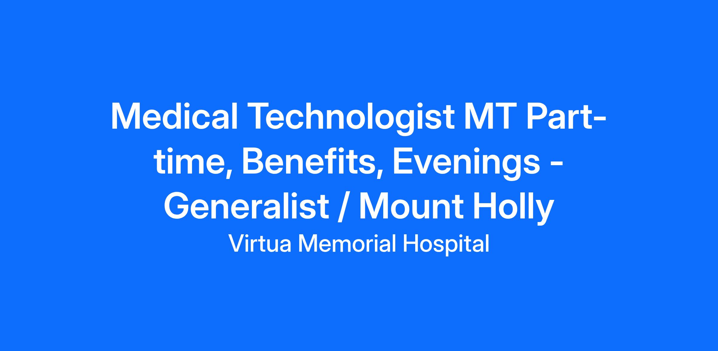 Med Tech MT or MLT - GENERALIST.