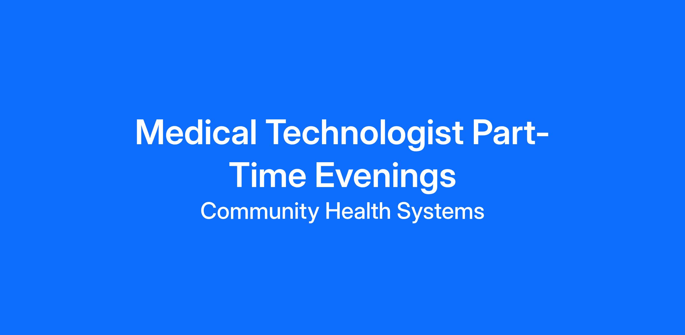 Medical Technologist Part-Time Evenings