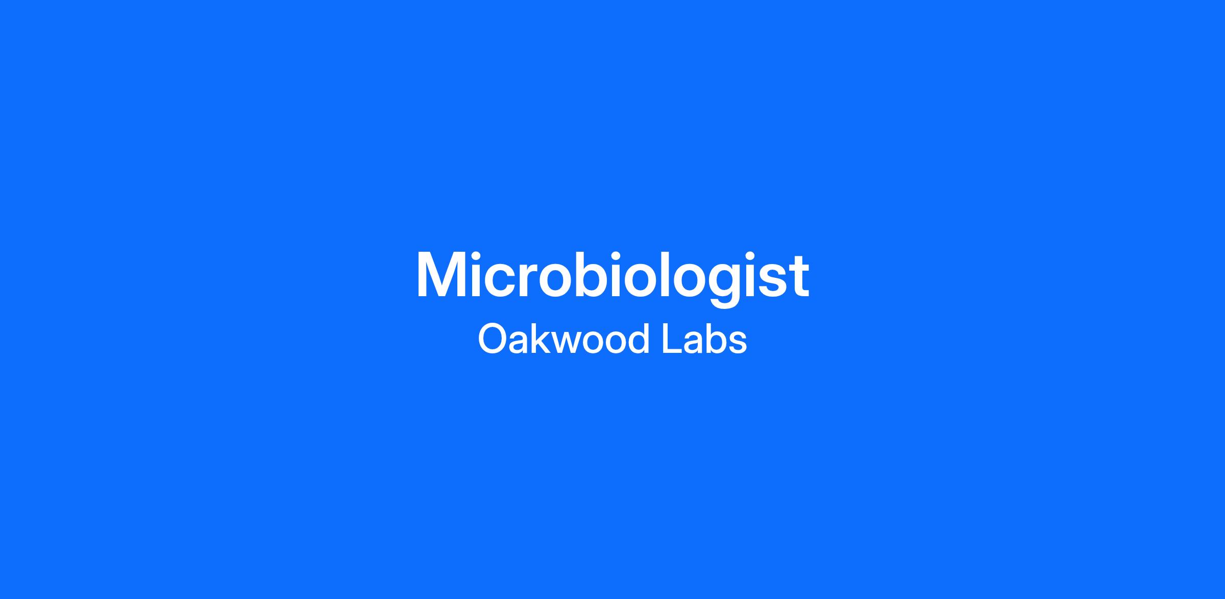 Oakwood Laboratories Quality Control Microbiology Department is searching for a Microbiologist.