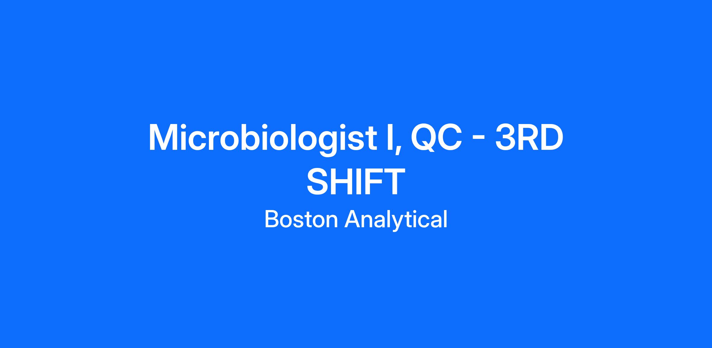 The QC Microbiologist conducts quantitative and qualitative analysis of pharmaceutical products according to FDA, cGMP and Boston Analytical, Inc. Standard Operating Procedures. Duties will include analysis of pharmaceutical products through compendial methods and client specific test protocols.