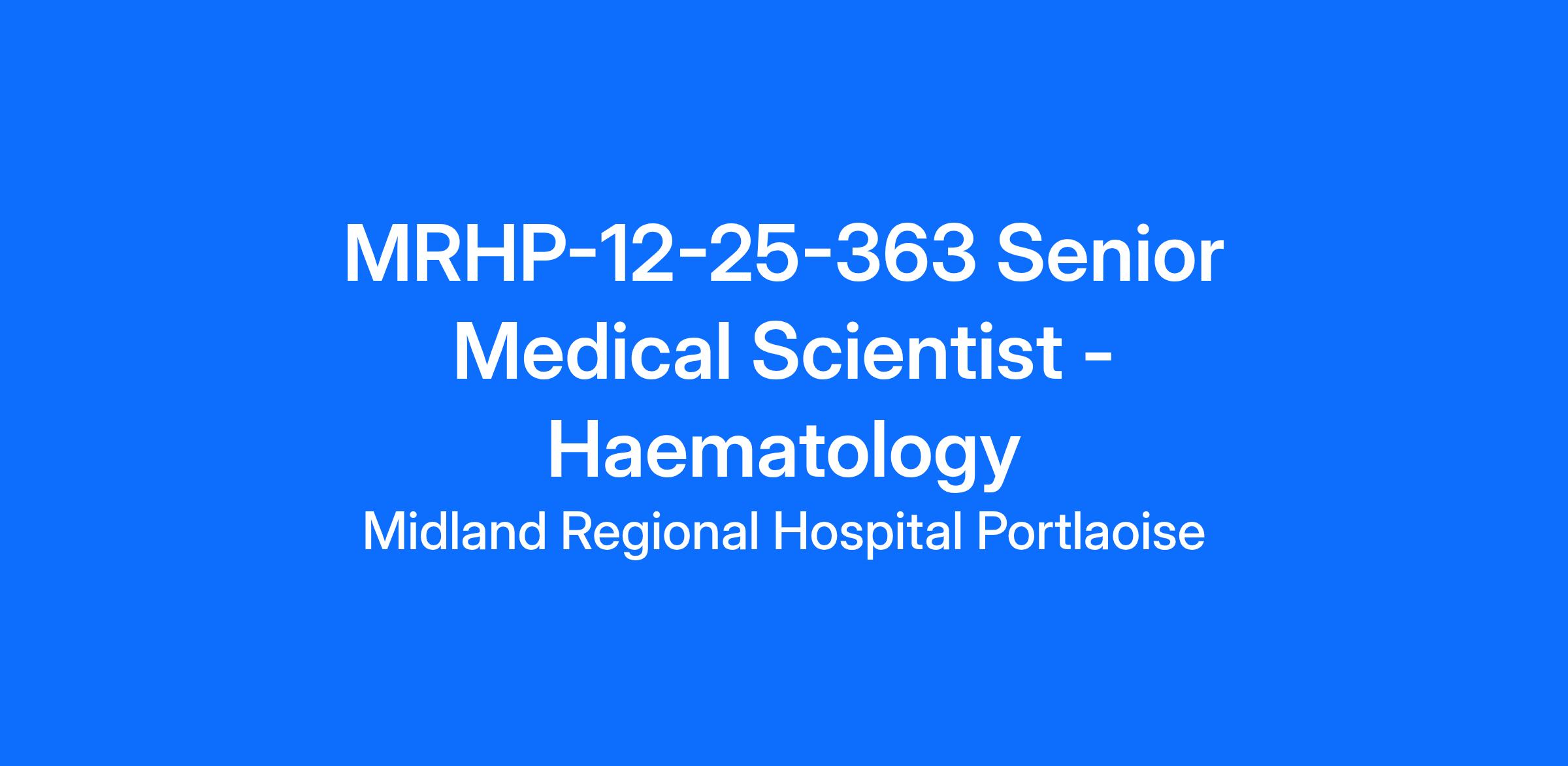 There is currently one permanent, whole-time Senior Medical Scientist – Haematology vacancy available in the Laboratory at the Midland Regional Hospital Portlaoise.