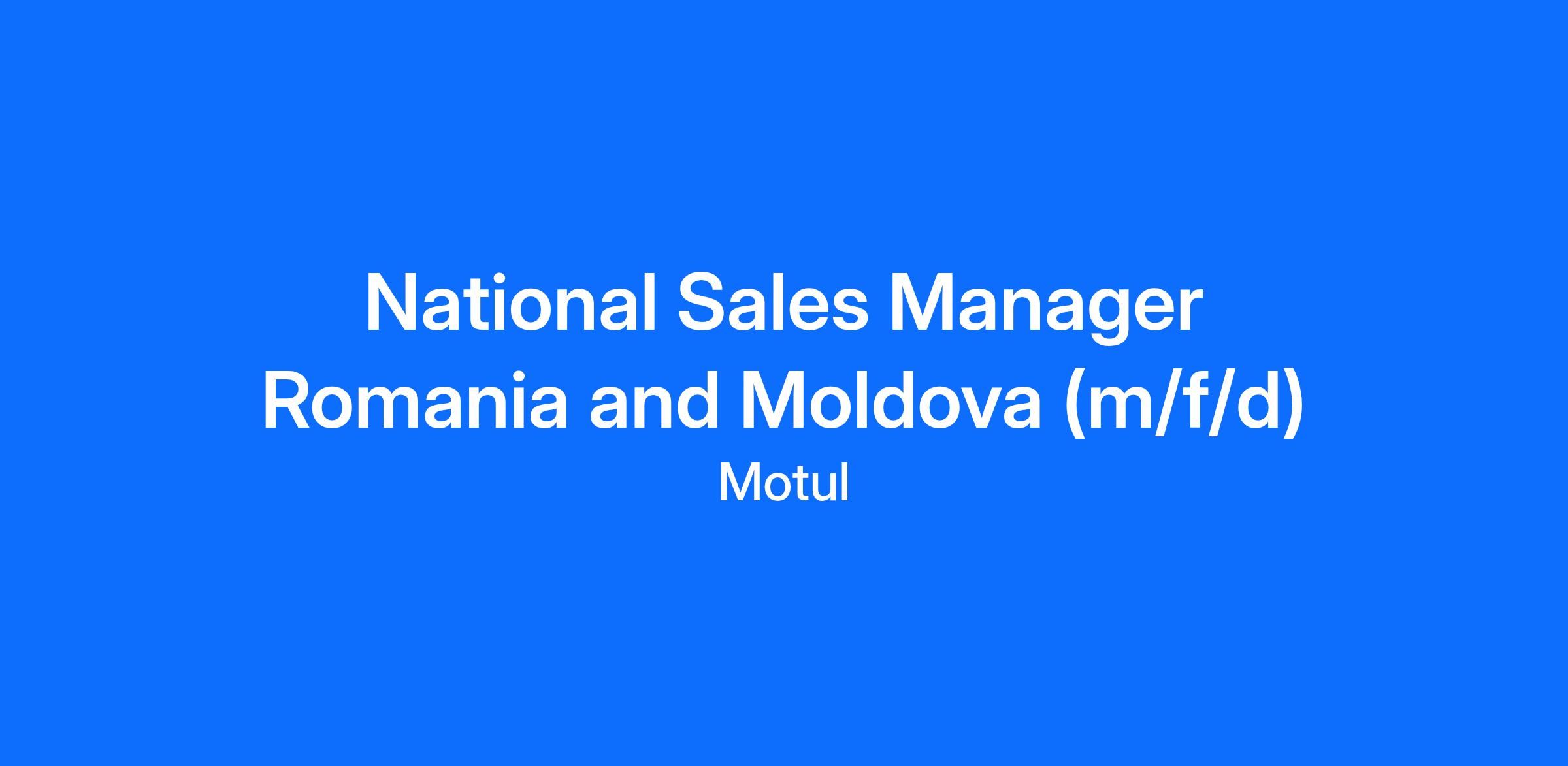 As a National Sales Manager you are you are responsible to develop MOTUL business in Romania and Moldova, build strong partnerships with Motul importers and grow Motul share in their assortment. You will coordinate sales and marketing activities provided to MOTUL importers and make all efforts to increase MOTUL’s brand awareness and visibility.