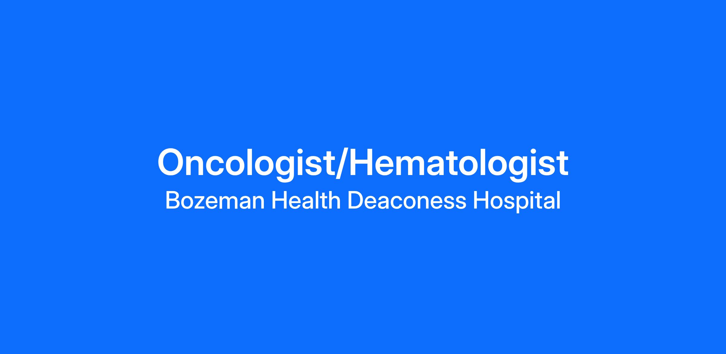 Bozeman Health is rapidly growing Cancer center and is seeking a Hematology/Oncology Physician. Come join a team of 5 physicians, 5 APCs, and 2 radiation oncologist. We offer a highly competitive salary, generous sign-on bonus, performance bonus, relocation, CME, and a robust employee benefits package. Our Cancer Center is open Monday through Friday from 8am to 5pm; Closed Saturdays and Sundays. Call is required – Bozeman Health Cancer Center enjoys an excellent regional reputation and broad community support - System-wide Epic EMR – We offer an active multidisciplinary tumor board with a team of expert medical professionals. Participates in hospital and clinic quality improvement and quality assurance activities as requested or required.