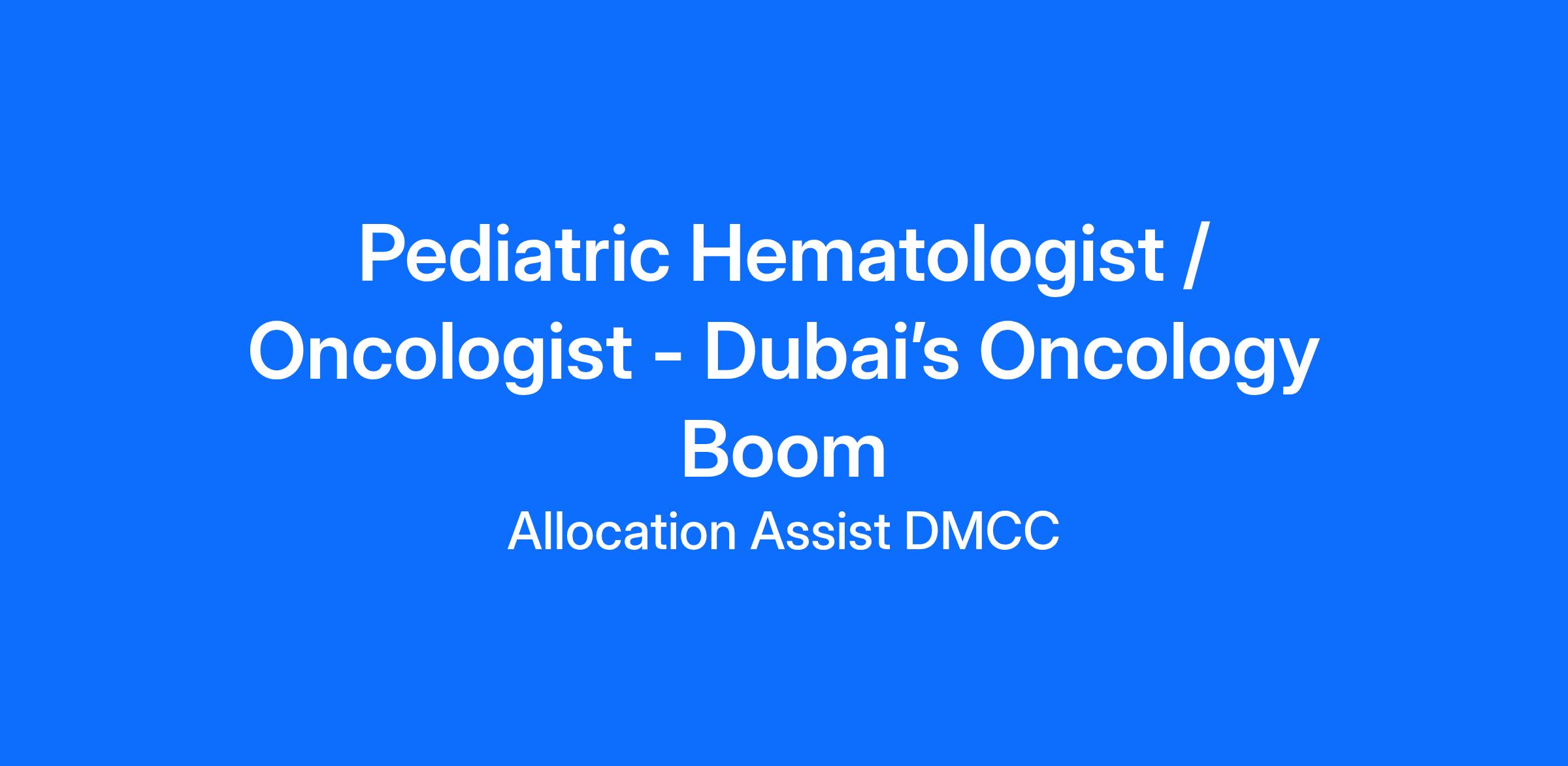 Pediatric Hematologist / Oncologist - Dubai’s Oncology Boom