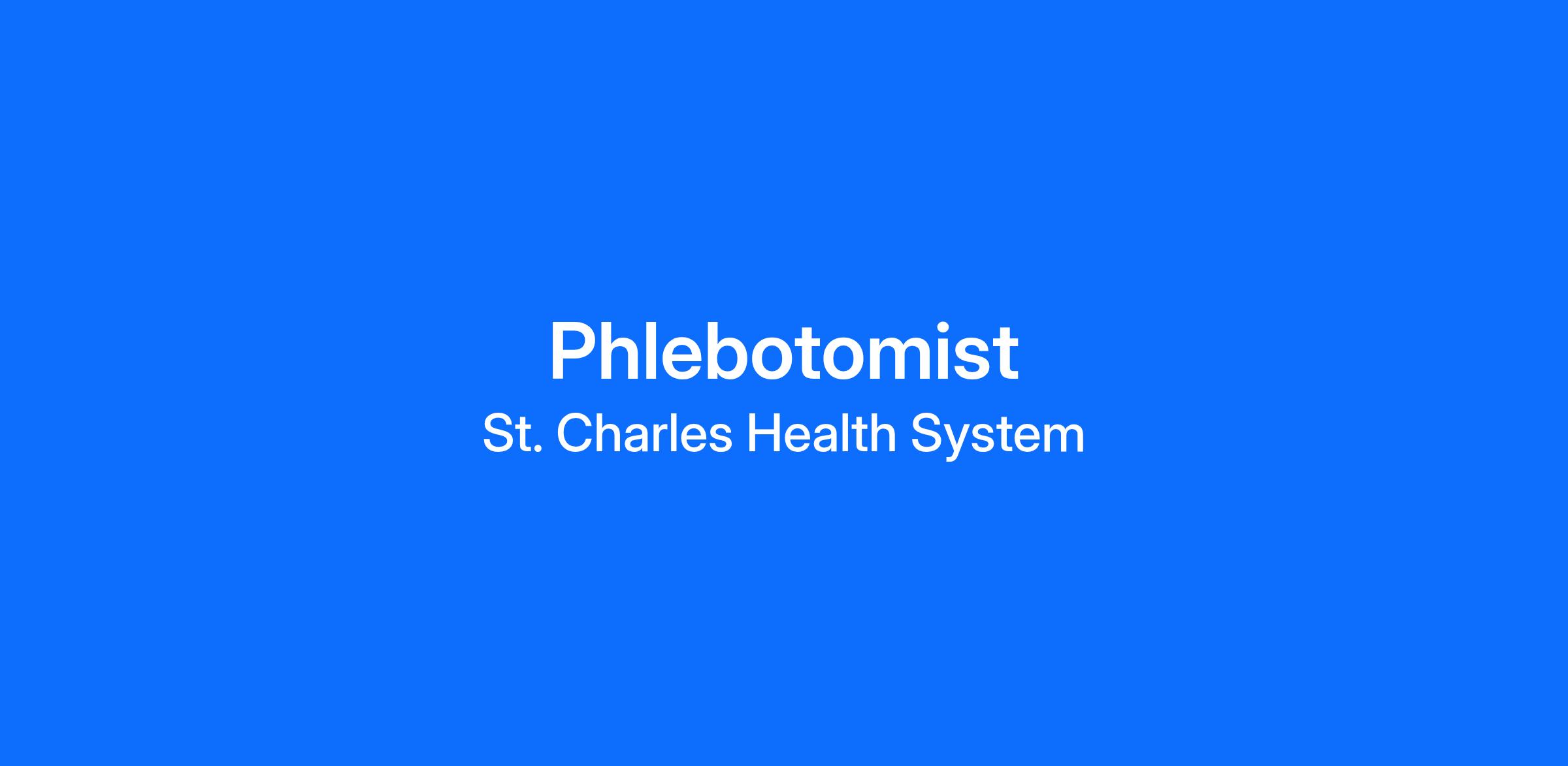 POSITION OVERVIEW: The Phlebotomist at St. Charles Health System processes laboratory orders and performs phlebotomy procedures/collections with as little discomfort as possible to patients of all ages. This position performs phlebotomy procedures following the standards of practice as outlined in System policies and procedures and while working within the boundaries of the Phlebotomy Scope of Practice. This position does not directly manage other caregivers, however may be asked to review and provide feedback on the work of other caregivers.
