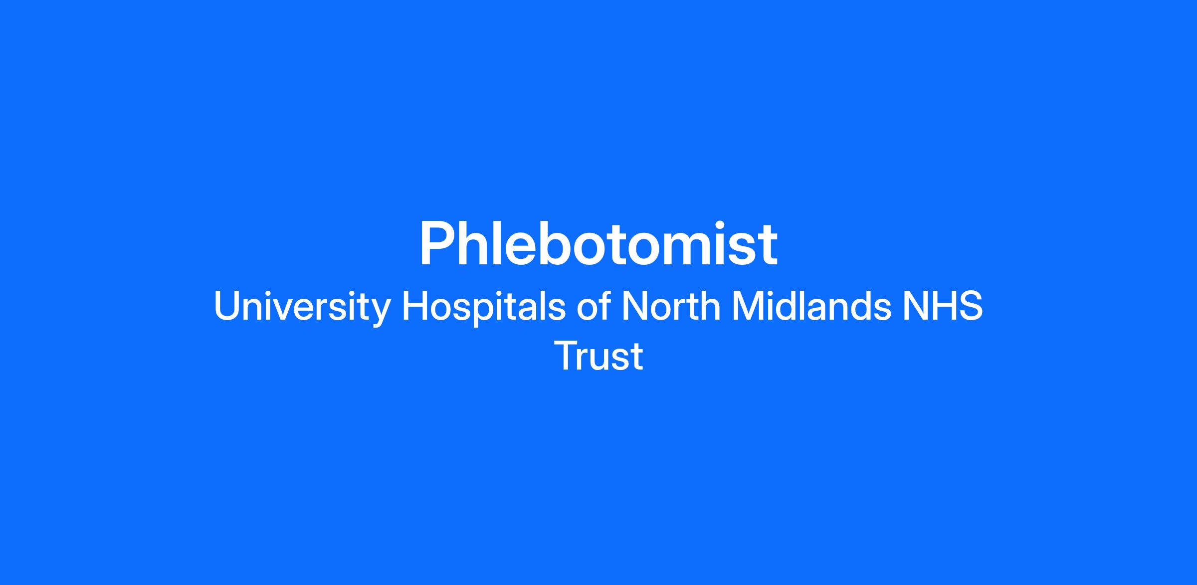 We offer a phlebotomy service in a range of locations across North Midlands including Royal Stoke and County Hospitals, ward based, community walk-in centres and community appointment based clinics.