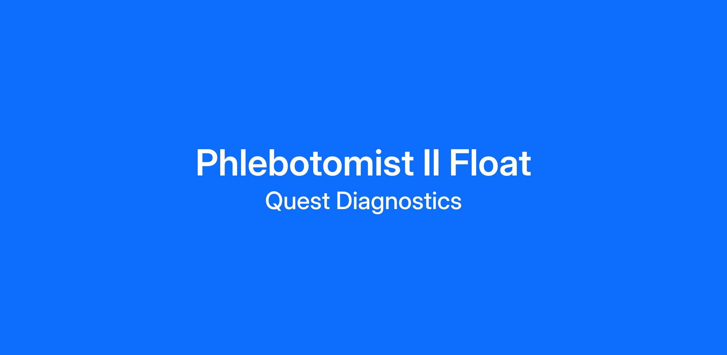 Phlebotomist II Float - San Pablo, CA, Floats have varying schedules that can range from 6:30 AM to 5:30 PM, Monday to Friday, with rotating Saturdays