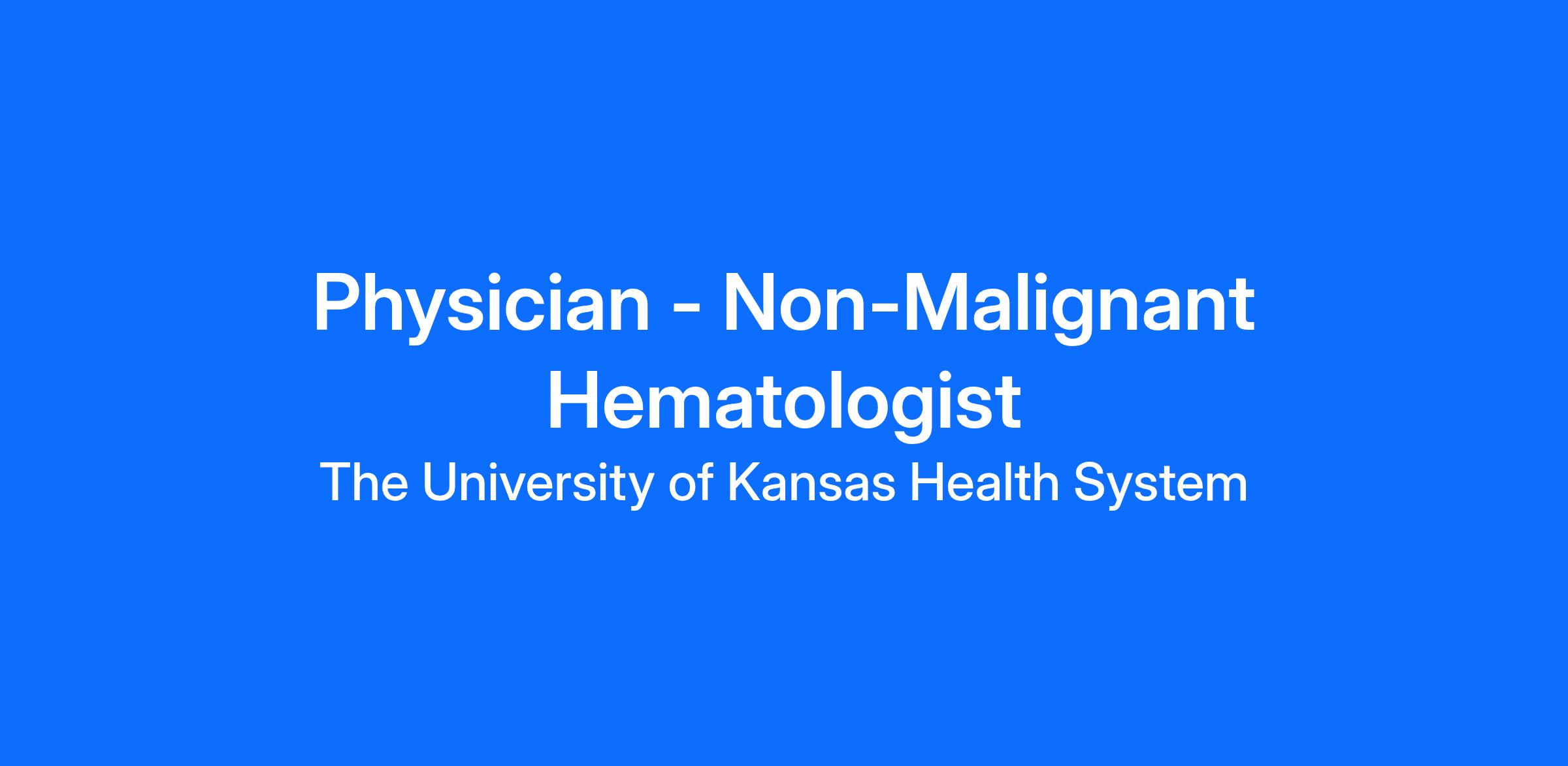 The University of Kansas Health System, Department of Internal Medicine, is seeking a Classical (Benign) Hematologist to join its expanding team, which currently includes five physicians and two nurse practitioners.