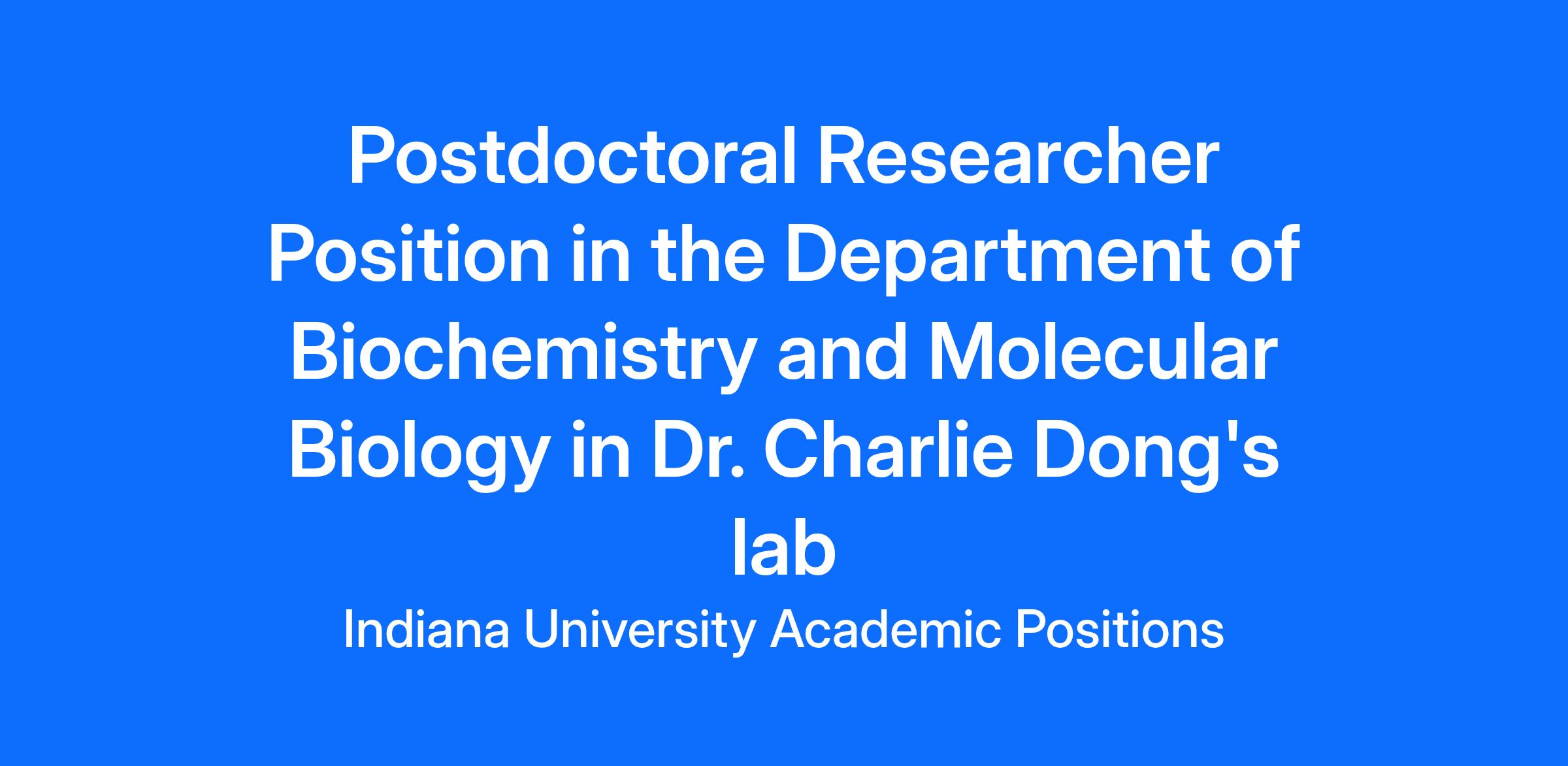 Dr. Charlie Dong’s laboratory in the Department of Biochemistry and Molecular Biology, Indiana University School of Medicine located in Indianapolis, Indiana is currently recruiting a highly skilled and motivated postdoctoral researcher to join the research team. Dr. Dong’s lab is funded by the National Institutes of Health. The current lab research is focused on the pathogenesis and molecular mechanism of diabetes and obesity, fatty liver disease, and cancer using both cell systems and animal models. Indianapolis is the capital and most populous city in the State of Indiana. It is growing economically thanks to a strong corporate base anchored by the life sciences. Indiana is home to one of the nation’s largest concentrations of health sciences companies. Indianapolis has a sophisticated blend of charm and culture with a wonderful balance of business and leisure. The growing residential base is supported by rich amenities and quality of life – the city possesses a variety of professional sports, arts venues, and outdoor recreation areas. Residents of this dynamic city and surrounding suburbs enjoy leading educational systems and top-ranked universities paired with a diverse population. Indianapolis International Airport is a top-ranked international airport that has been named “Best Airport in North America” by Airports Council International for many years. For additional information on life in Indy: https://faculty.medicine.iu.edu/relocation IUSM is committed to being a welcoming campus community and we seek candidates whose research, teaching, and community engagement efforts contribute to robust learning and working environments for all students, staff, and faculty. We invite individuals who will join us in our mission to improve health equity and well-being for all throughout the state of Indiana.