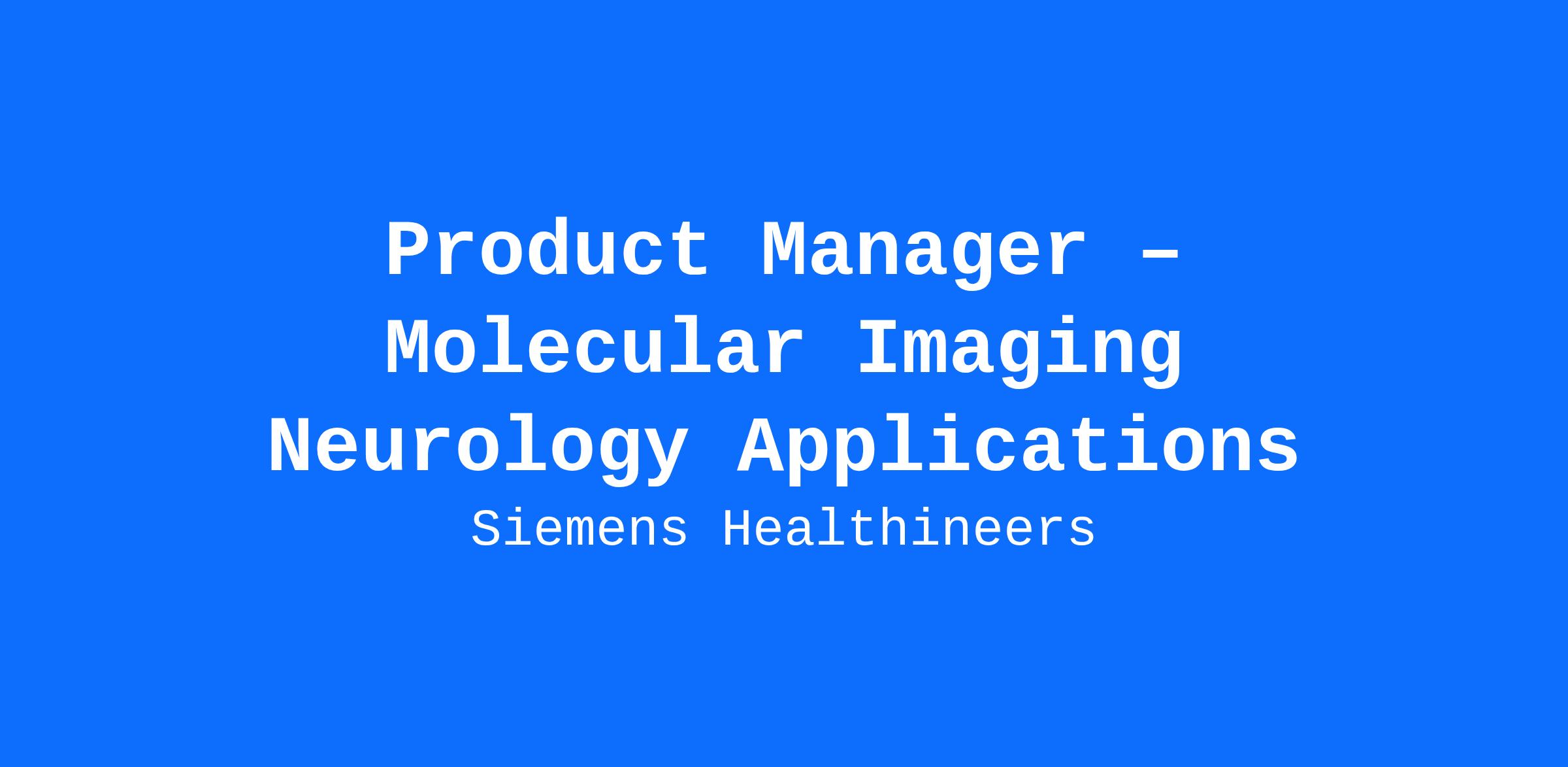 Product Manager – Molecular Imaging Neurology Applications