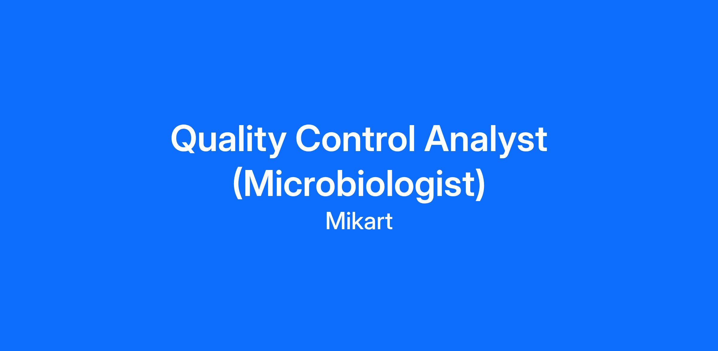 The Quality Control Analyst (Microbiologist) for Mikart, LLC is responsible performing analyses on incoming samples requiring microbiological testing.