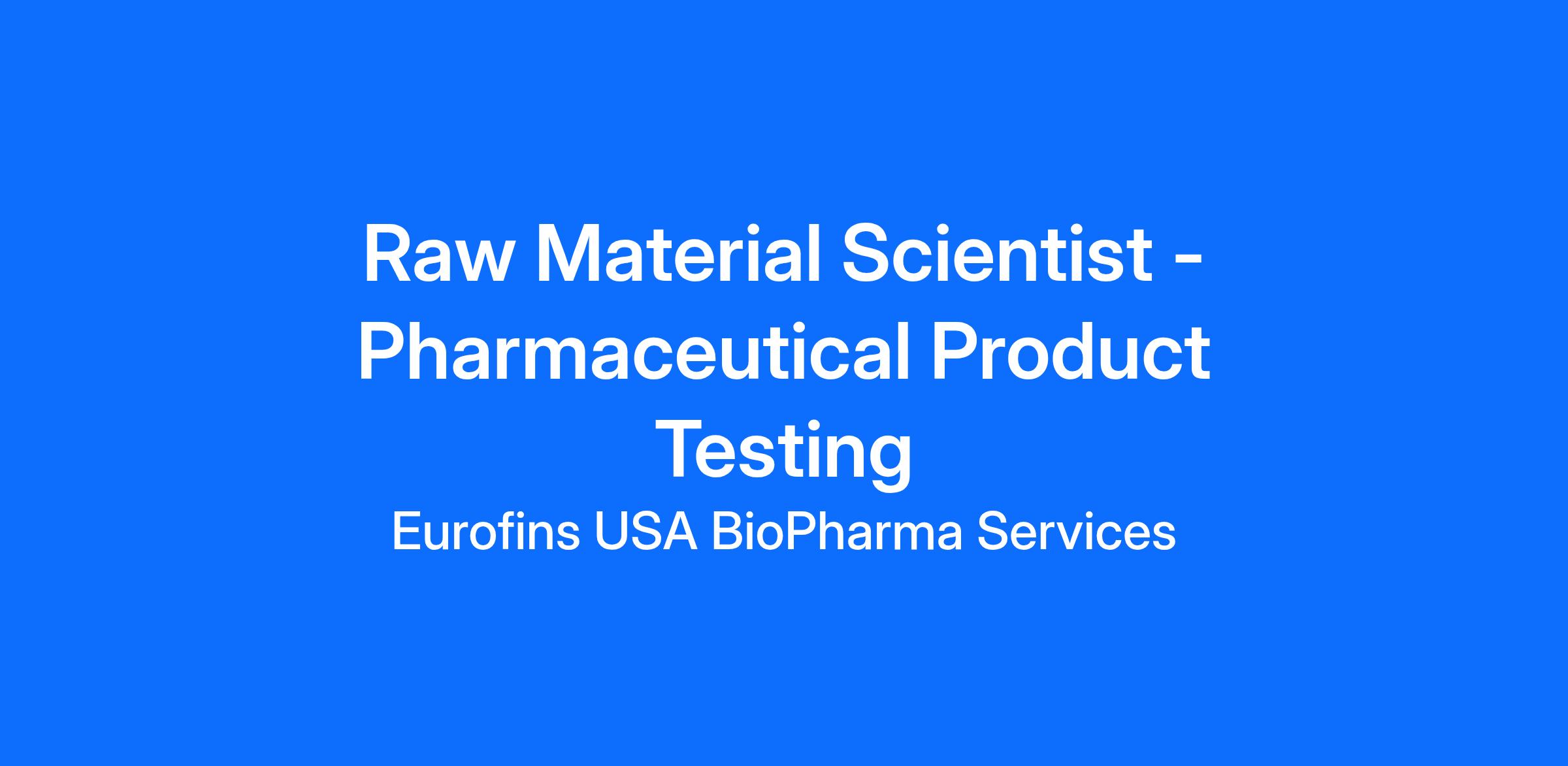 Eurofins USA BioPharma Services is a Disabled and Veteran Equal Employment Opportunity employer.