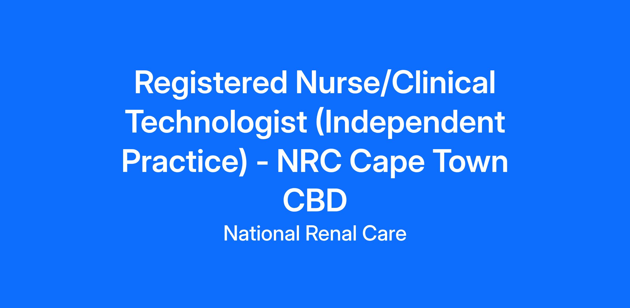 Registered Nurse/Clinical Technologist (Independent Practice) - NRC Cape Town CBD