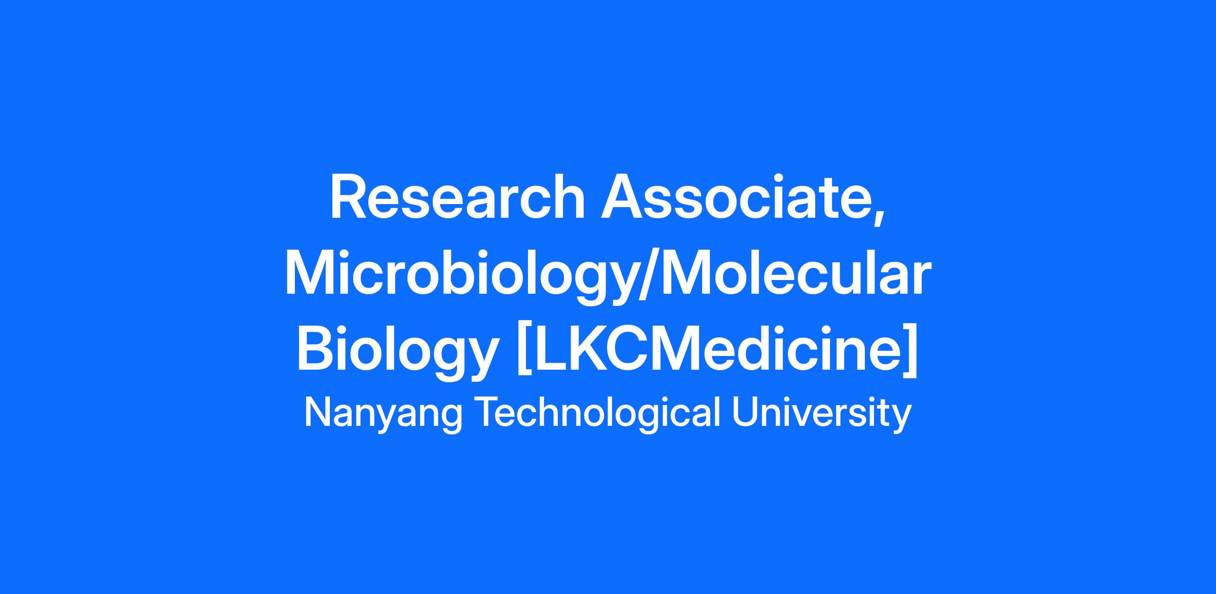 LKCMedicine is recruiting a Research Associate for the Respiratory and Infectious Diseases Programme, Laboratory of Antimicrobial Resistance and Drug Discovery under Professor Pablo Bifani.
