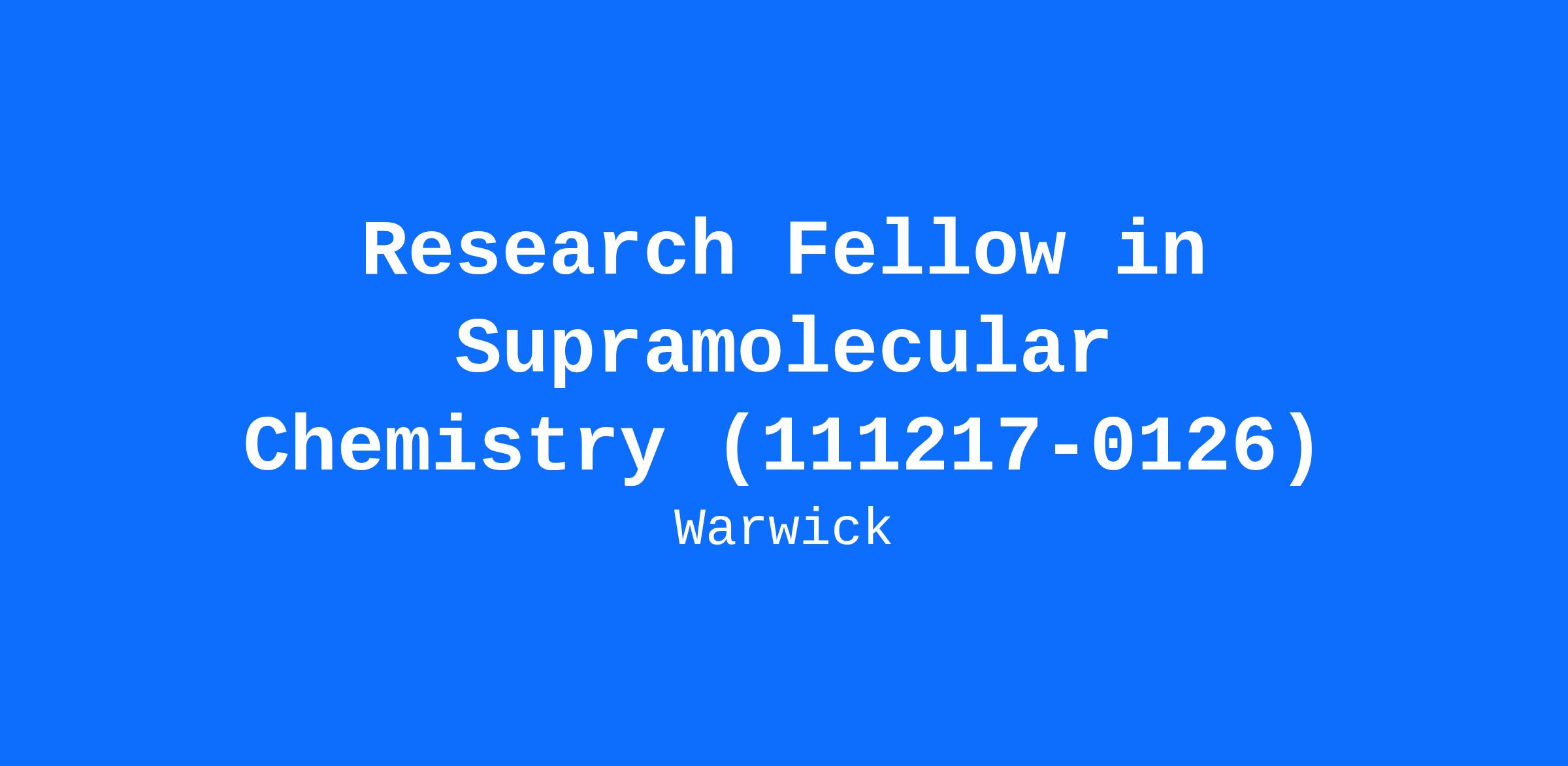 Research Fellow in Supramolecular Chemistry (111217-0126)