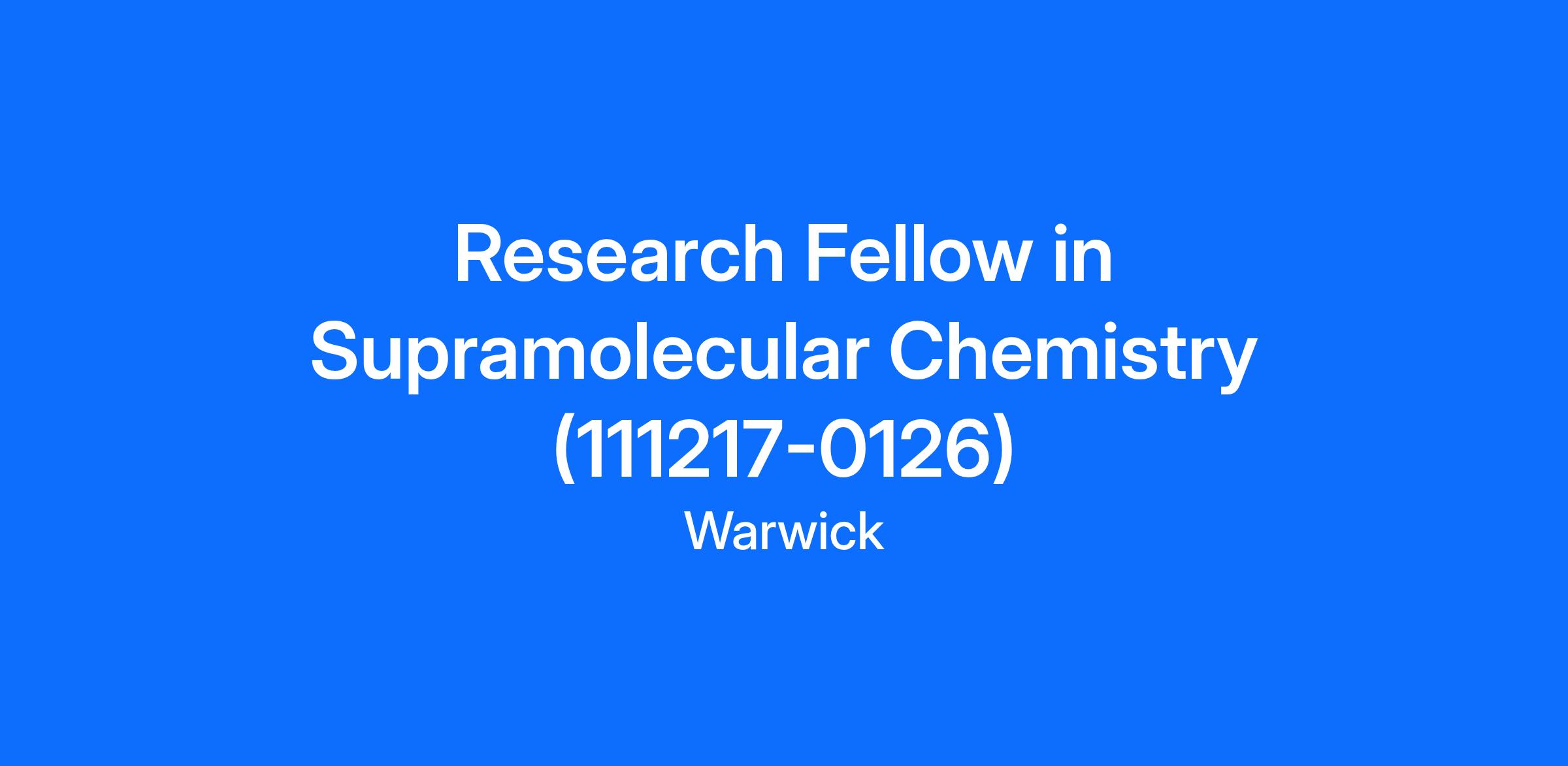 Research Fellow in Supramolecular Chemistry (111217-0126)