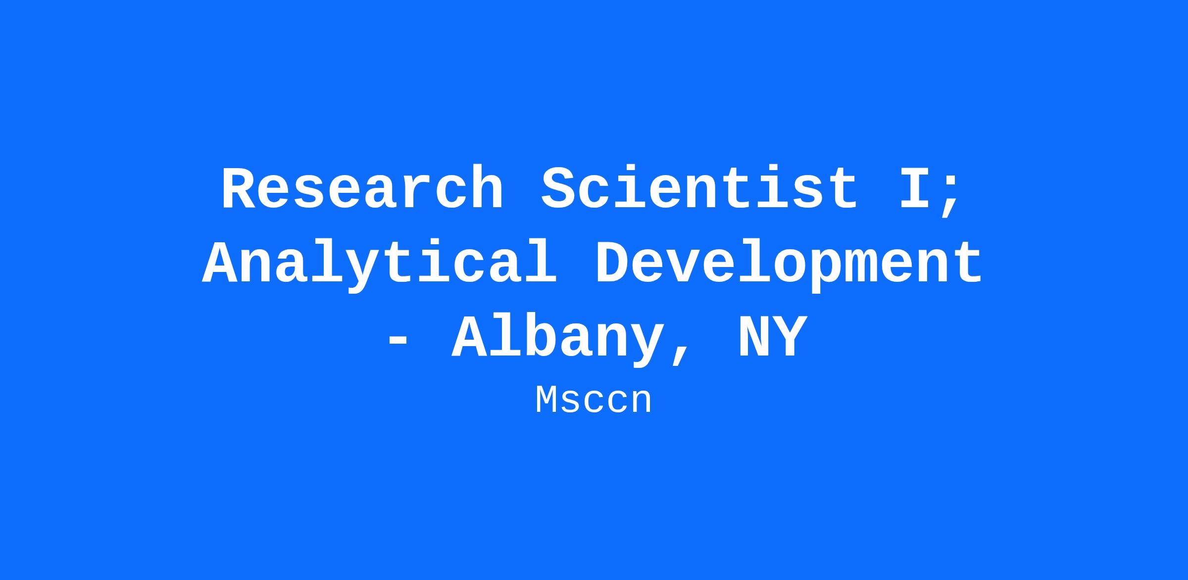 Research Scientist I; Analytical Development in Albany, NY