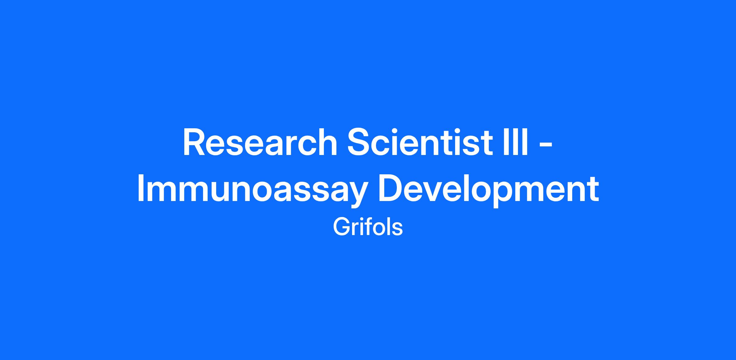 The Immunoassay Research and Development group at Grifols Diagnostic Solutions in Emeryville, CA is seeking a experienced immunoassay development scientist to help develop ultrasensitive assays for multiple commercial indications.
